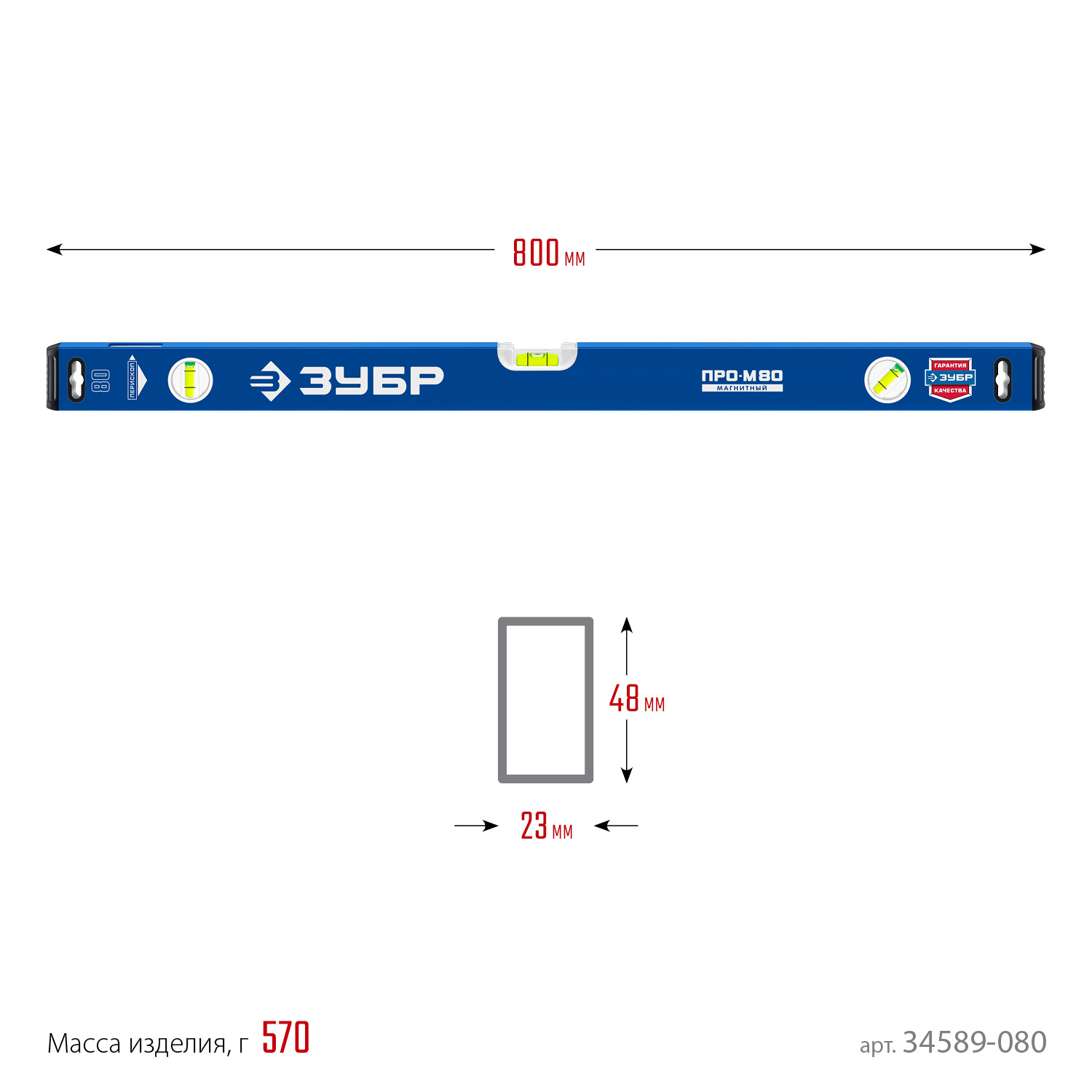ЗУБР ПРО-М, 800 мм, усиленный магнитный уровень, Профессионал (34589-080)