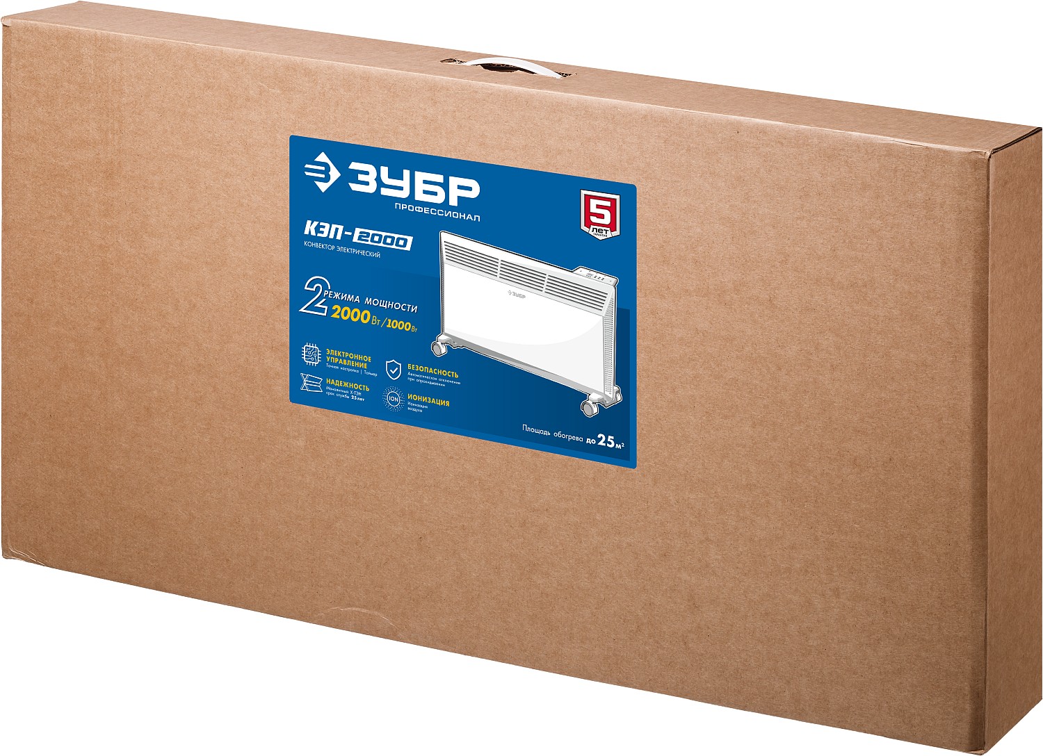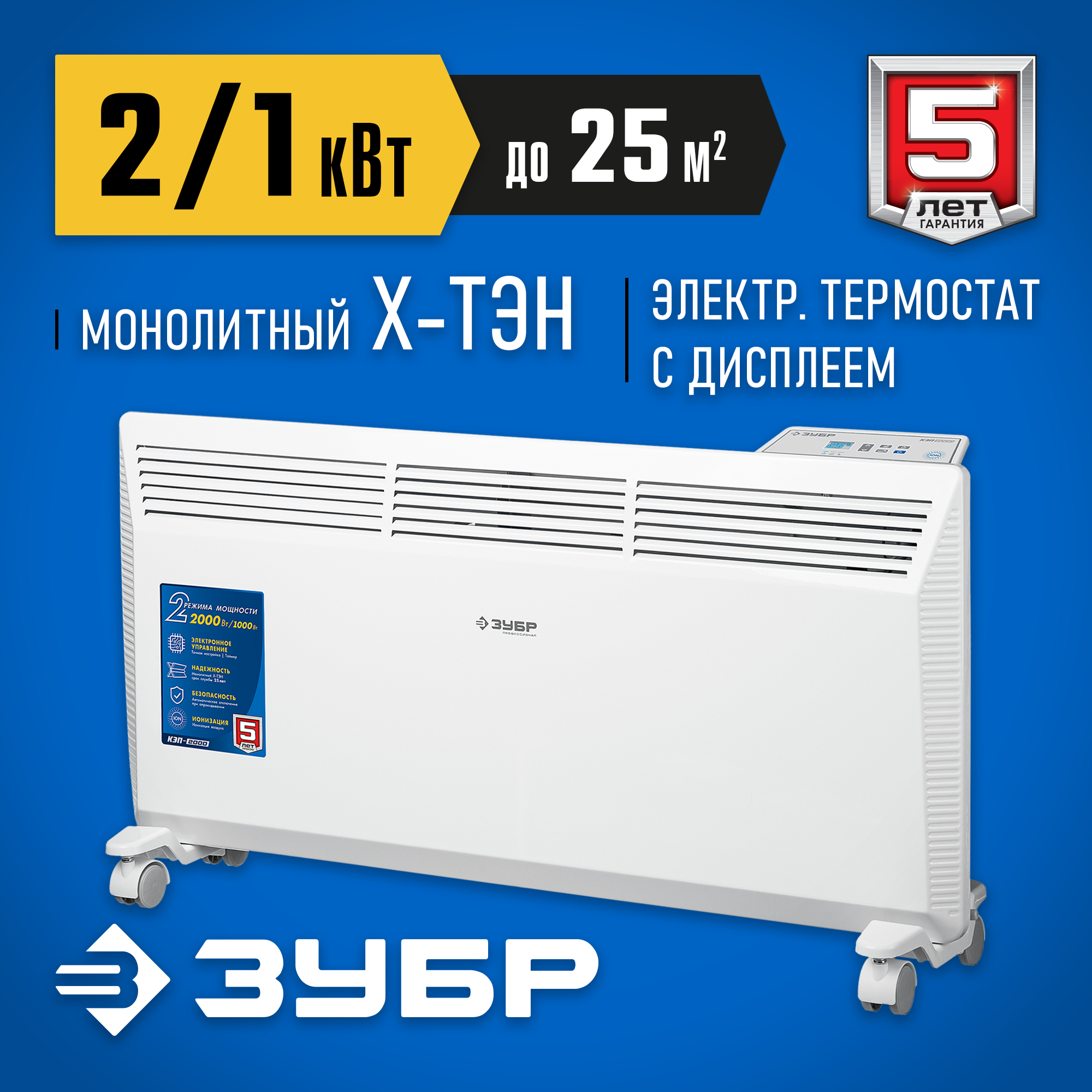 Электрический конвектор ЗУБР ПРОФЕССИОНАЛ мощностью 2000 Вт - подойдет для обогрева любых домашних и офисных помещений, включая ванные комнаты, площадью до 25 м2. Электронный терморегулятор и ионизация воздуха обеспечит равномерный нагрев помещения и создаст неповторимую атмосферу комфорта. Сделано в России