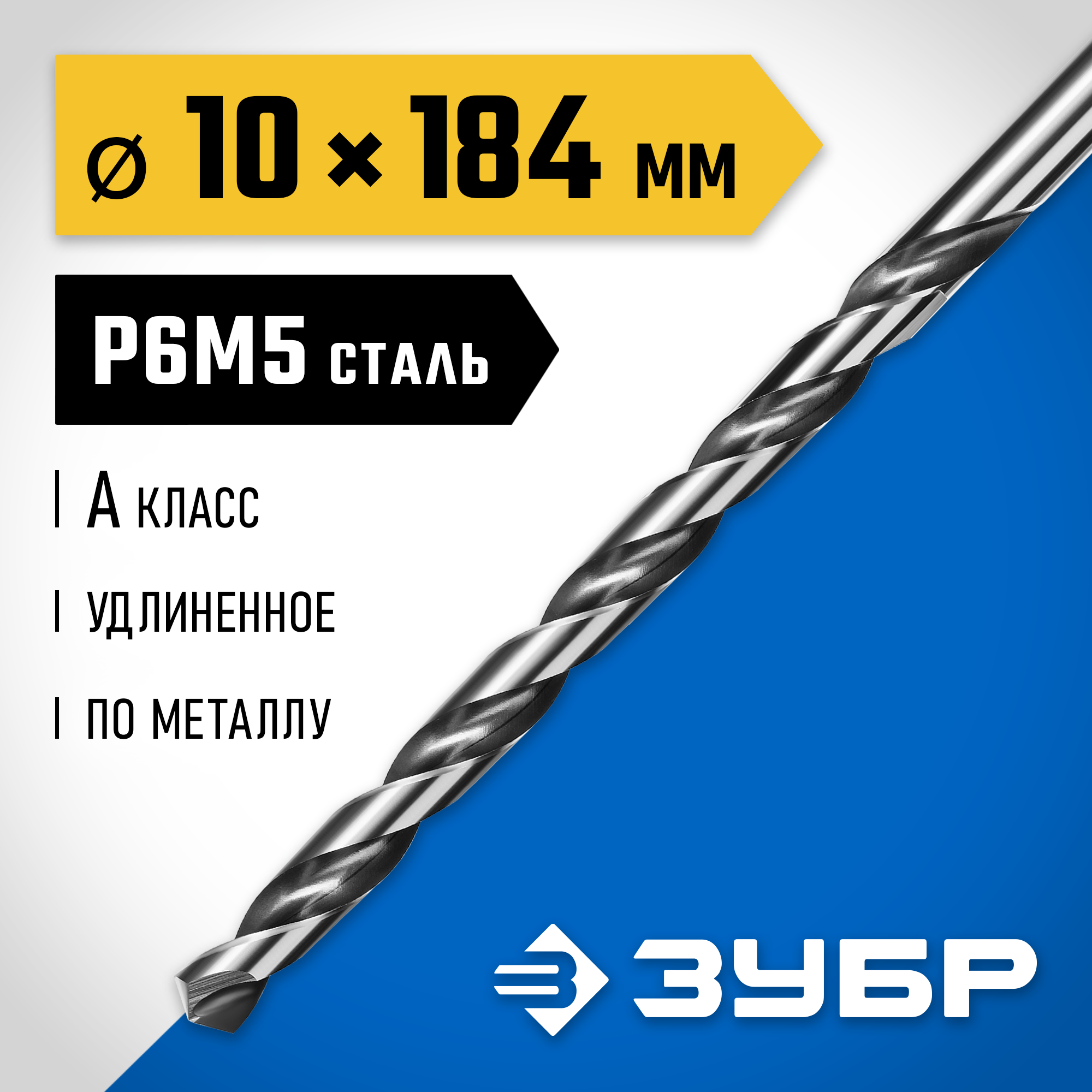 ЗУБР ПРОФ-А, 10.0 х 184 мм, сталь Р6М5, класс А, удлиненное сверло по металлу, Профессионал (29624-10)
