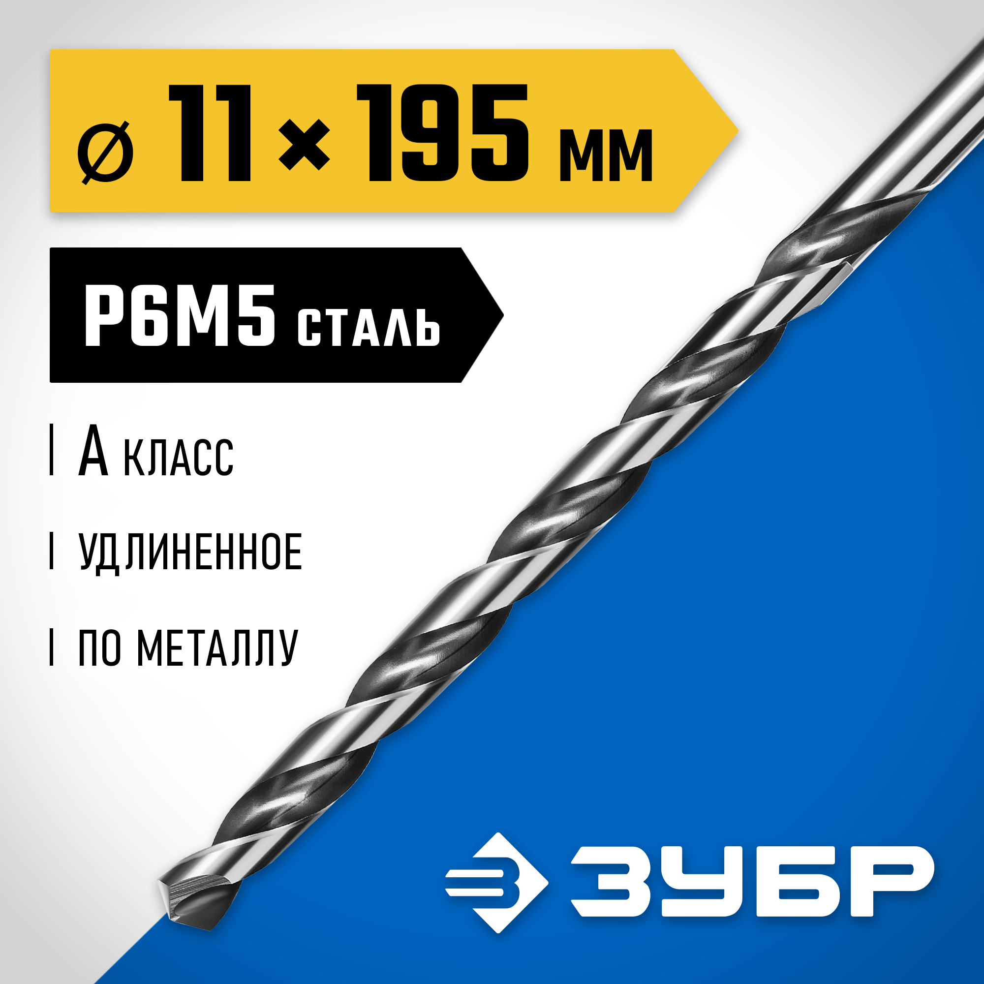 ЗУБР ПРОФ-А, 11.0 х 195 мм, сталь Р6М5, класс А, удлиненное сверло по металлу, Профессионал (29624-11)