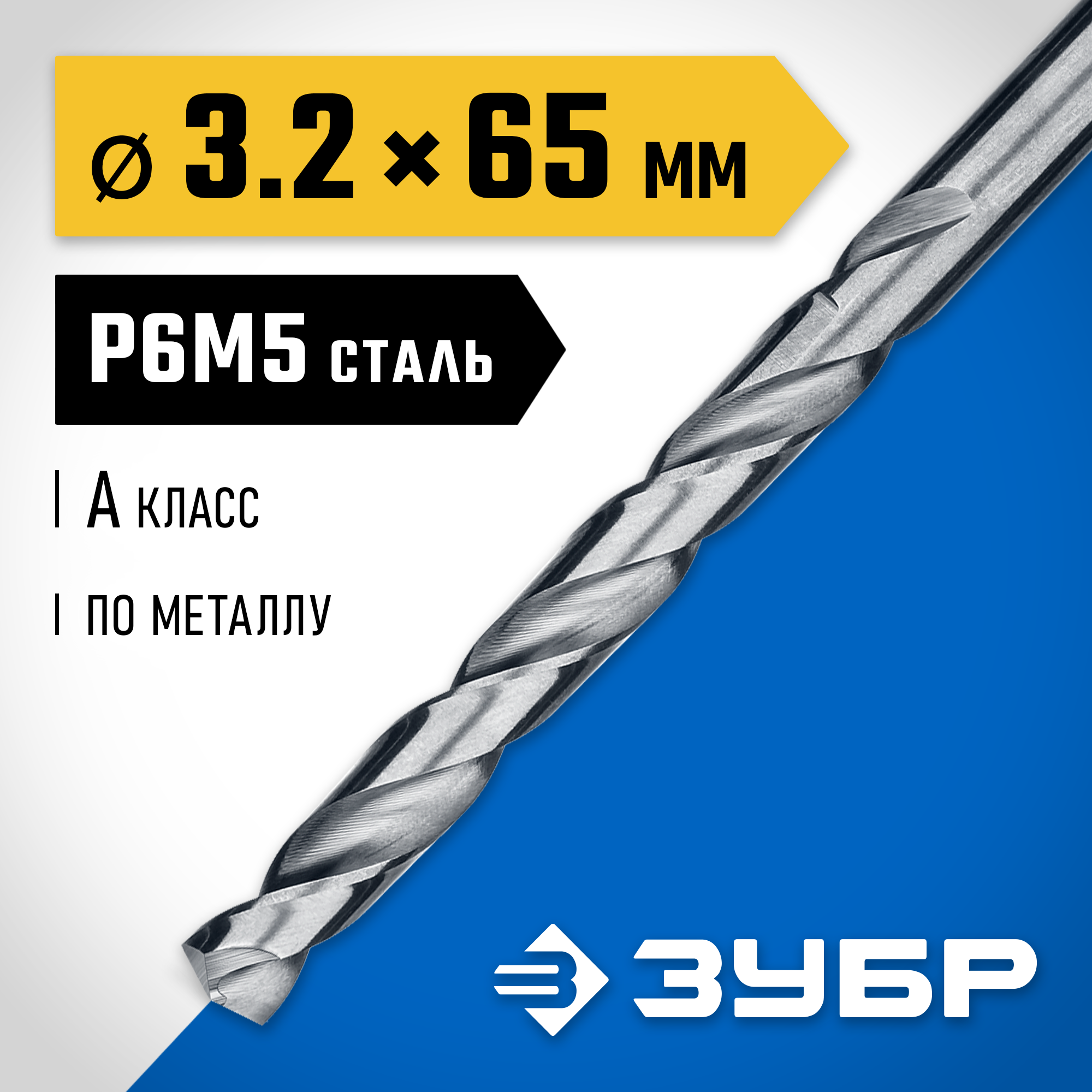 ЗУБР ПРОФ-А, 3.2 х 65 мм, сталь Р6М5, класс А, сверло по металлу, Профессионал (29625-3.2)