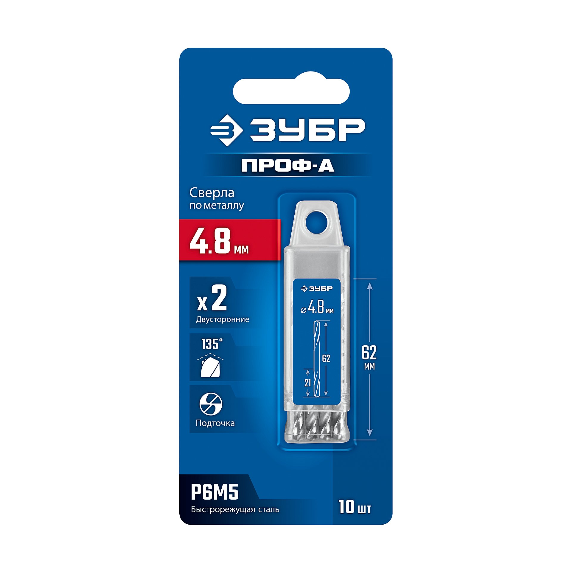 ЗУБР Проф-А 4.8х62мм, сверло двухстороннее по металлу, сталь Р6М5, класс А, 10шт, Профессионал (29627-4.8-10)