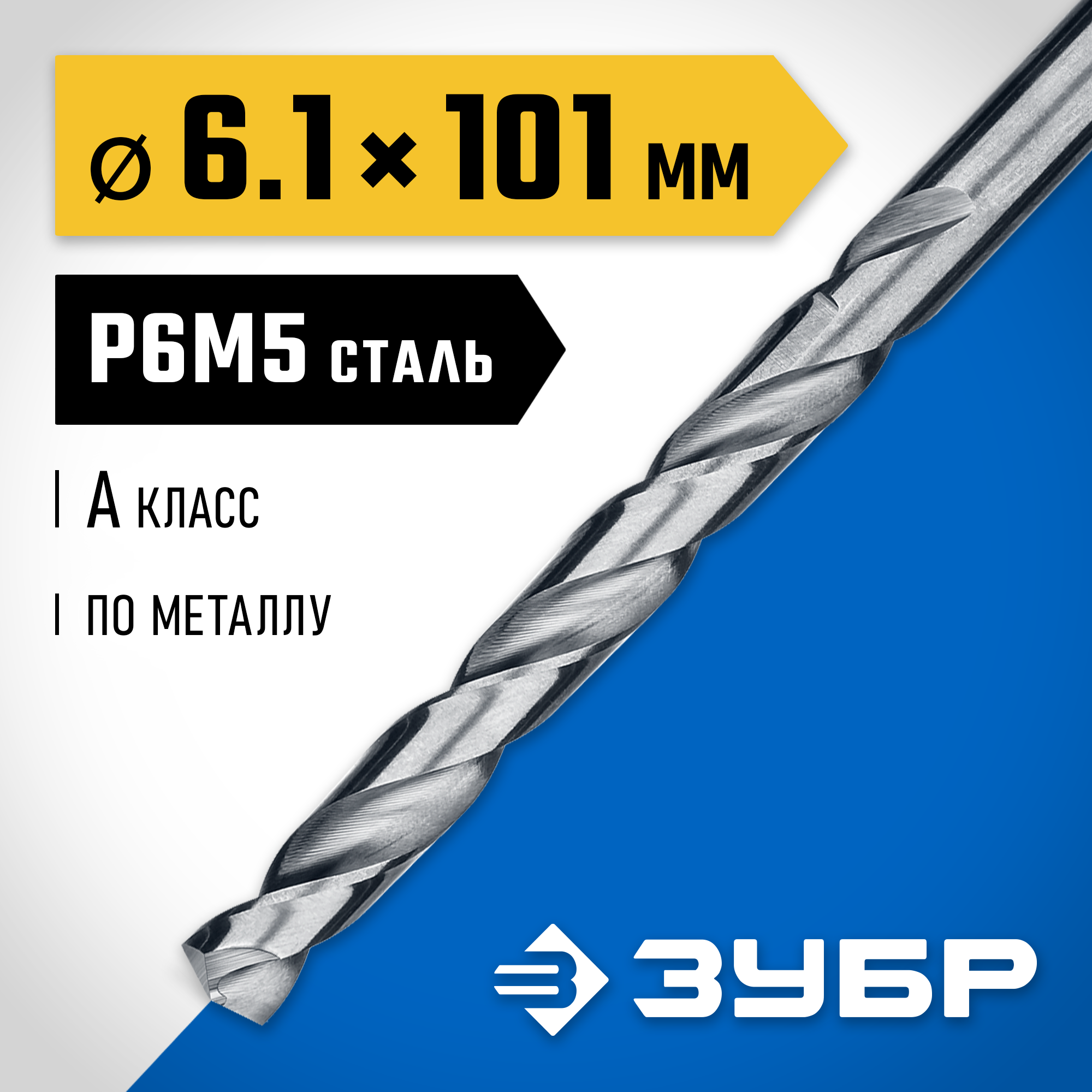 ЗУБР ПРОФ-А, 6.1 х 101 мм, сталь Р6М5, класс А, сверло по металлу, Профессионал (29625-6.1)