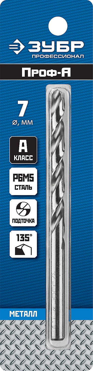 ЗУБР ПРОФ-А, 7.0 х 109 мм, сталь Р6М5, класс А, сверло по металлу, Профессионал (29625-7)
