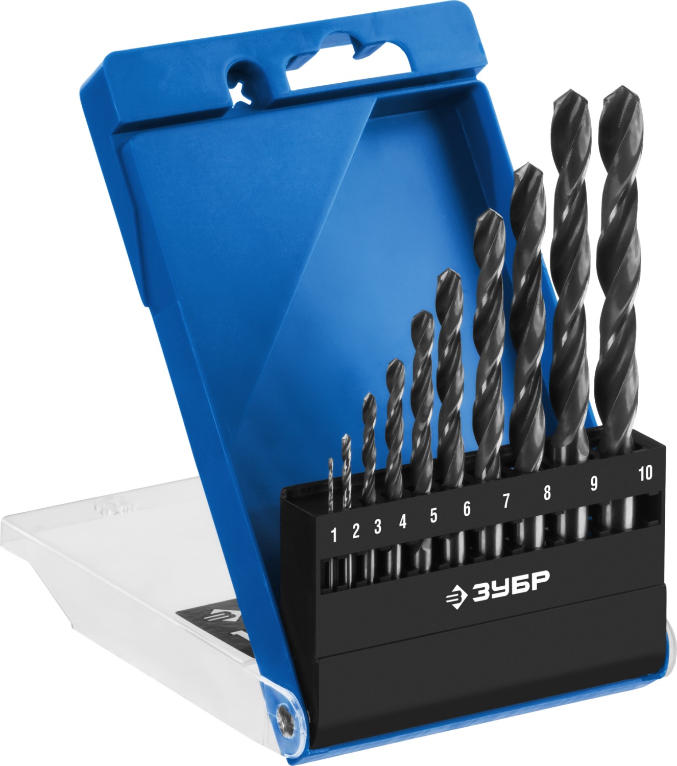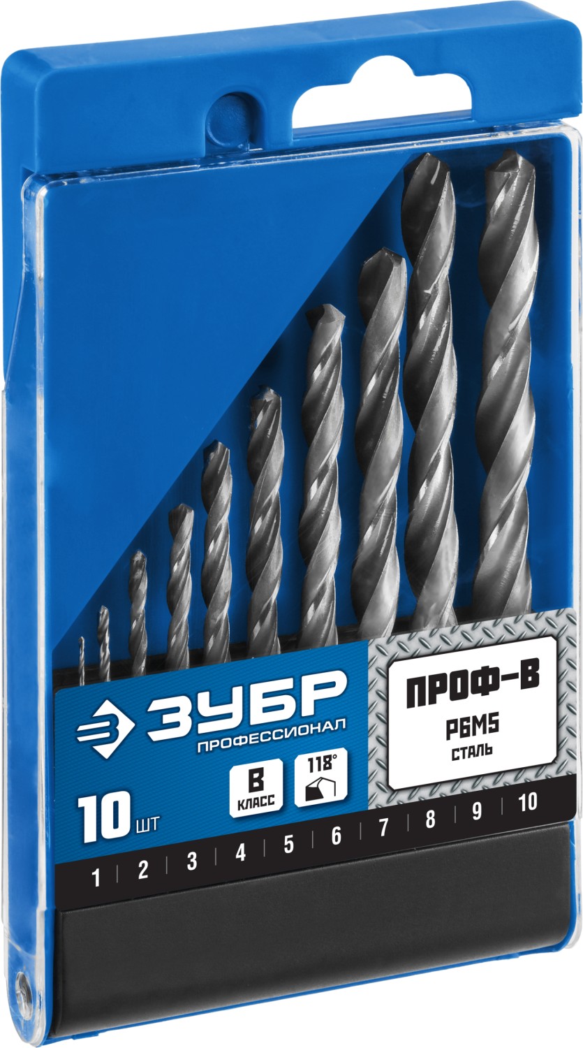 ЗУБР ПРОФ-В, 10 шт, (1-10 мм), сталь Р6М5, класс В, набор сверл по металлу, Профессионал (29621-H10)