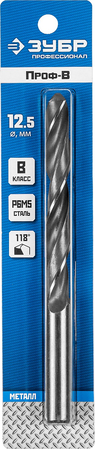 ЗУБР ПРОФ-В, 12.5 х 151 мм, сталь Р6М5, класс В, сверло по металлу, Профессионал (29621-12.5)