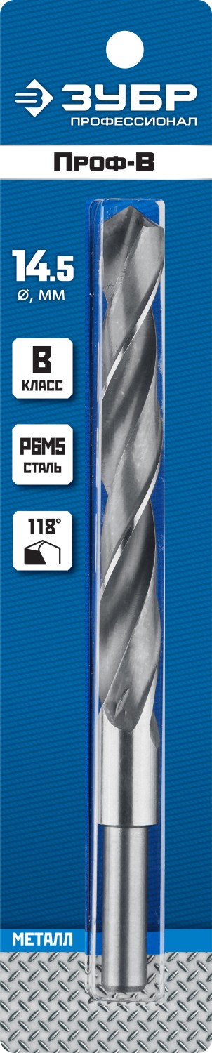 ЗУБР ПРОФ-В, 14.5 х 169 мм, сталь Р6М5, класс В, проточенный хвостовик, сверло по металлу, Профессионал (29621-14.5)