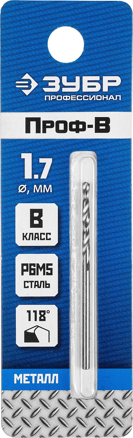 ЗУБР ПРОФ-В, 1.7 х 43 мм, сталь Р6М5, класс В, сверло по металлу, Профессионал (29621-1.7)