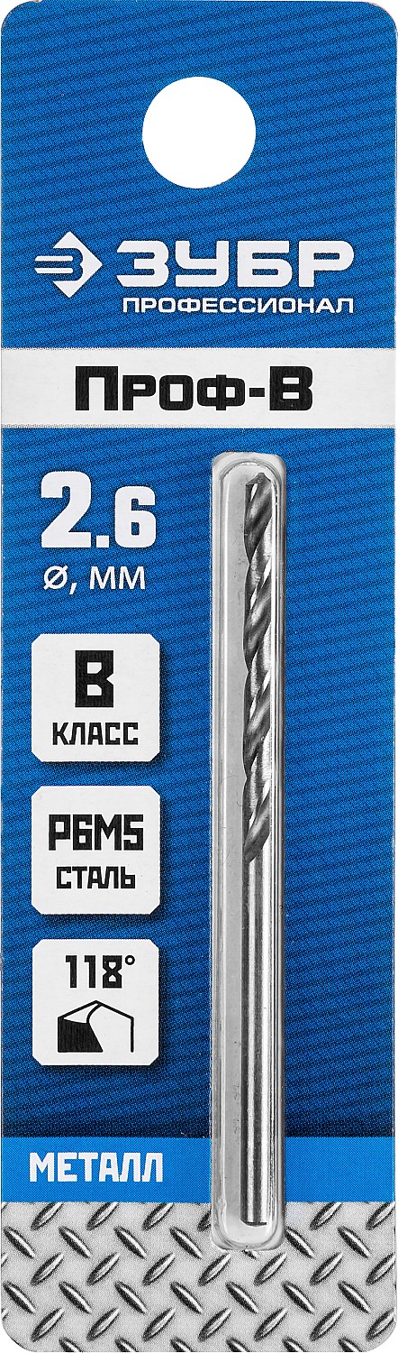 ЗУБР ПРОФ-В, 2.6 х 57 мм, сталь Р6М5, класс В, сверло по металлу, Профессионал (29621-2.6)