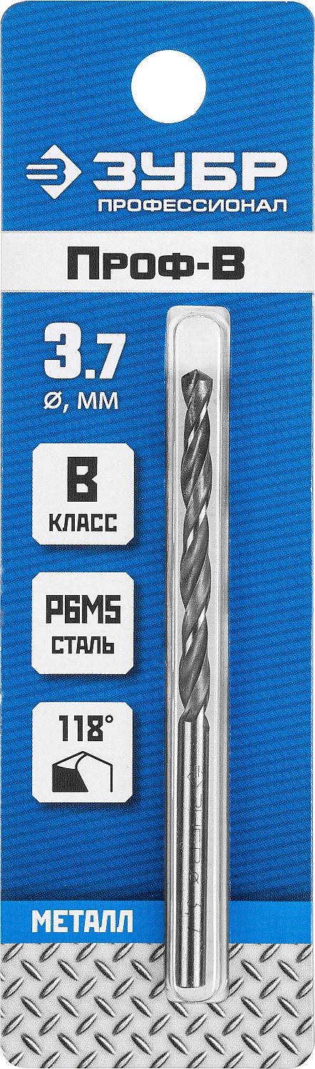 ЗУБР ПРОФ-В, 3.7 х 70 мм, сталь Р6М5, класс В, сверло по металлу, Профессионал (29621-3.7)