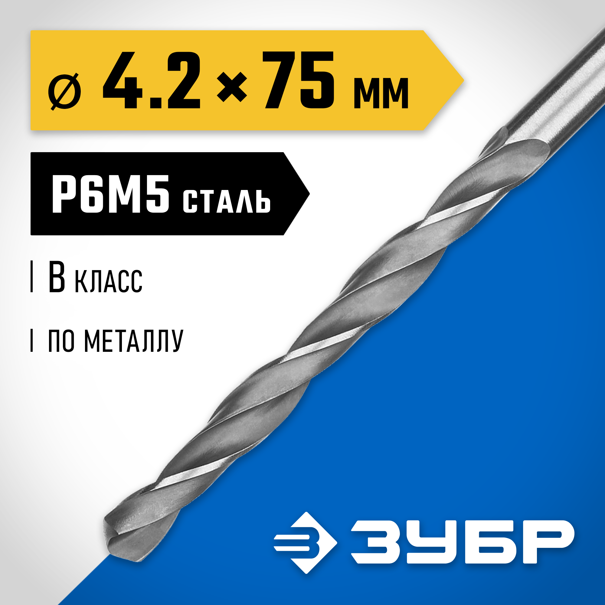 ЗУБР ПРОФ-В, 4.2 х 75 мм, сталь Р6М5, класс В, сверло по металлу, Профессионал (29621-4.2)
