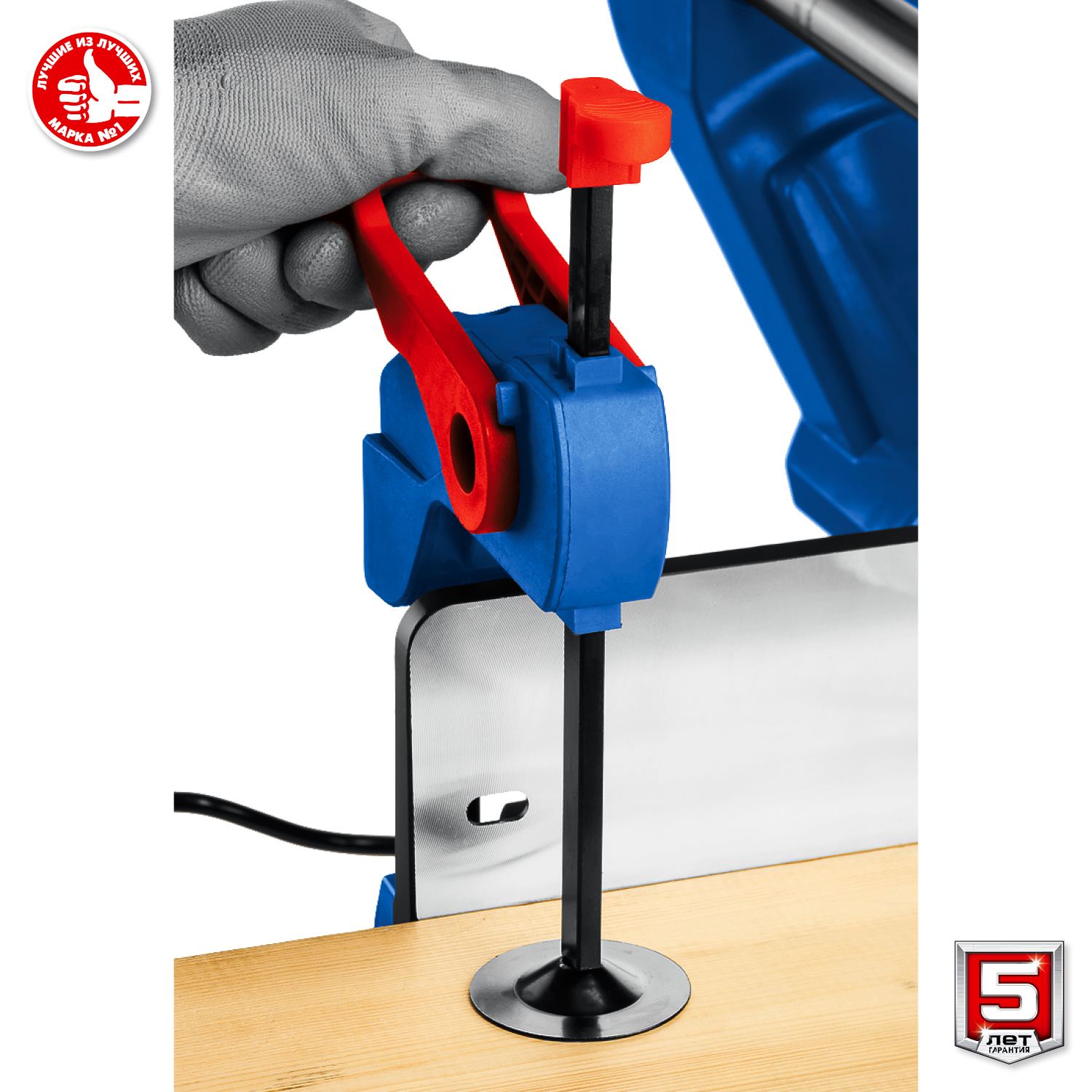 - Струбцина в комплекте для надежного удержания заготовки