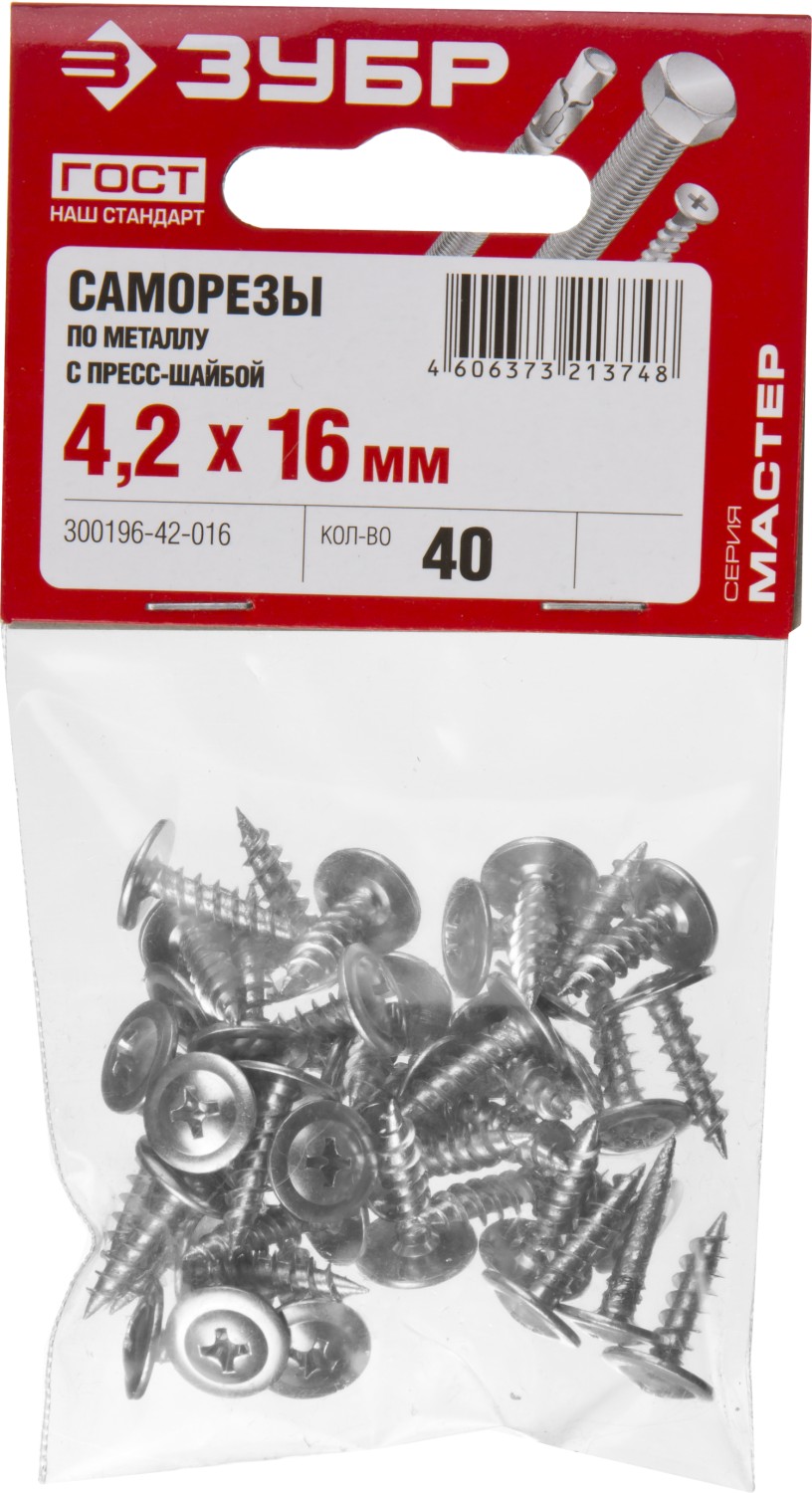 ЗУБР ПШМ, 16 х 4.2 мм, цинк, 40 шт, саморез с пресс-шайбой (300196-42-016)