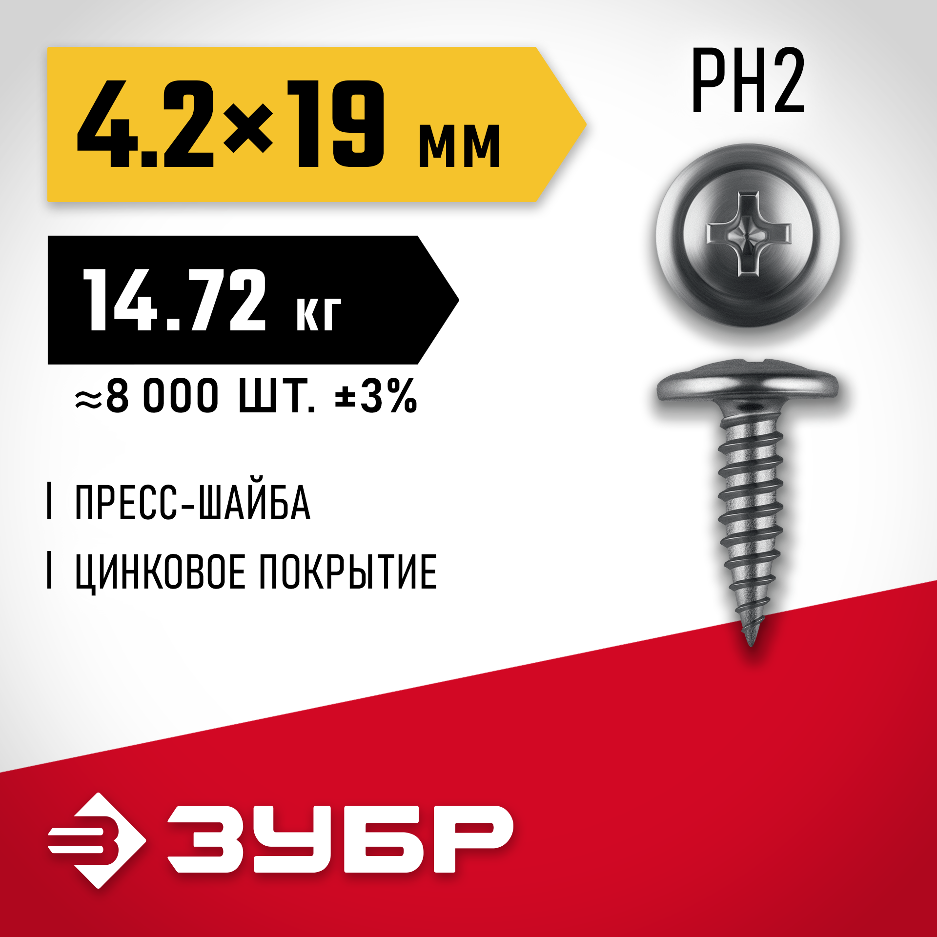 Саморезы с пресс-шайбой для листового металла изготовлены из стального прутка с высоким содержанием углерода. Контроль за геометрией самореза начинается с калибровки прутка и заканчивается тщательной проверкой размеров готового изделия. Нормативная твердость стали достигается термической обработкой. Поверхностная твердость 550-720HV, твердость в сердцевине 240-450HV. Саморезы легко вкручиваются обычным шуруповертом или отверткой с крестообразным шлицем PH2 (DIN). Предварительное сверление в скрепляемых материалах не требуется. Геометрические размеры: диаметр пресс-шайбы (W) - 10.5-11.0мм, диаметр головки (Dk) - 6.5-7.0мм, диаметр резьбы (D) - 4.1-4.3мм, шаг резьбы (Pi) - 3.38мм.