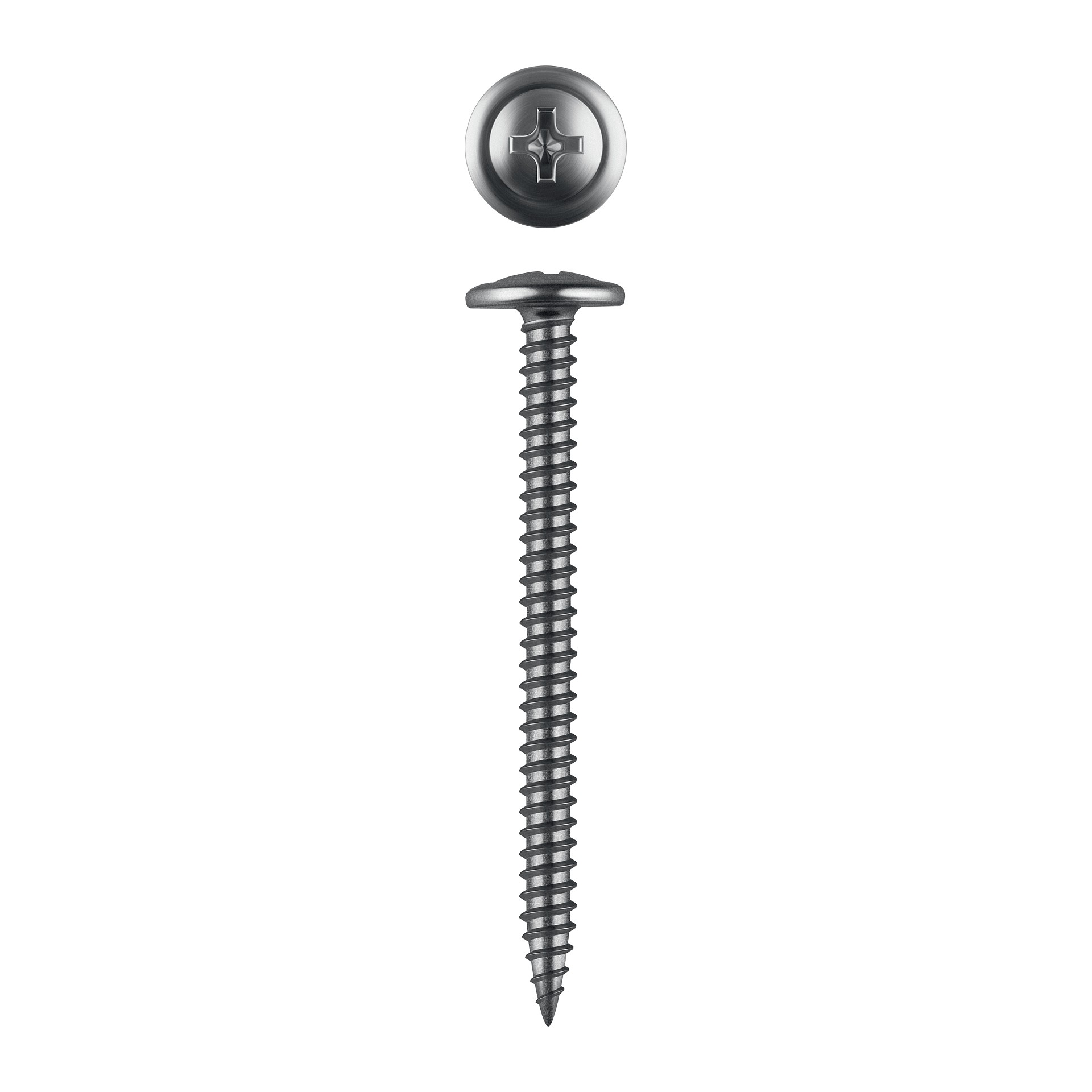 Саморезы с пресс-шайбой для листового металла изготовлены из стального прутка с высоким содержанием углерода. Контроль за геометрией самореза начинается с калибровки прутка и заканчивается тщательной проверкой размеров готового изделия. Нормативная твердость стали достигается термической обработкой. Поверхностная твердость 550-720HV, твердость в сердцевине 240-450HV. Саморезы легко вкручиваются обычным шуруповертом или отверткой с крестообразным шлицем PH2 (DIN). Предварительное сверление в скрепляемых материалах не требуется. Геометрические размеры: диаметр пресс-шайбы (W) - 10.5-11.0мм, диаметр головки (Dk) - 6.5-7.0мм, диаметр резьбы (D) - 4.1-4.3мм, шаг резьбы (Pi) - 3.38мм.
