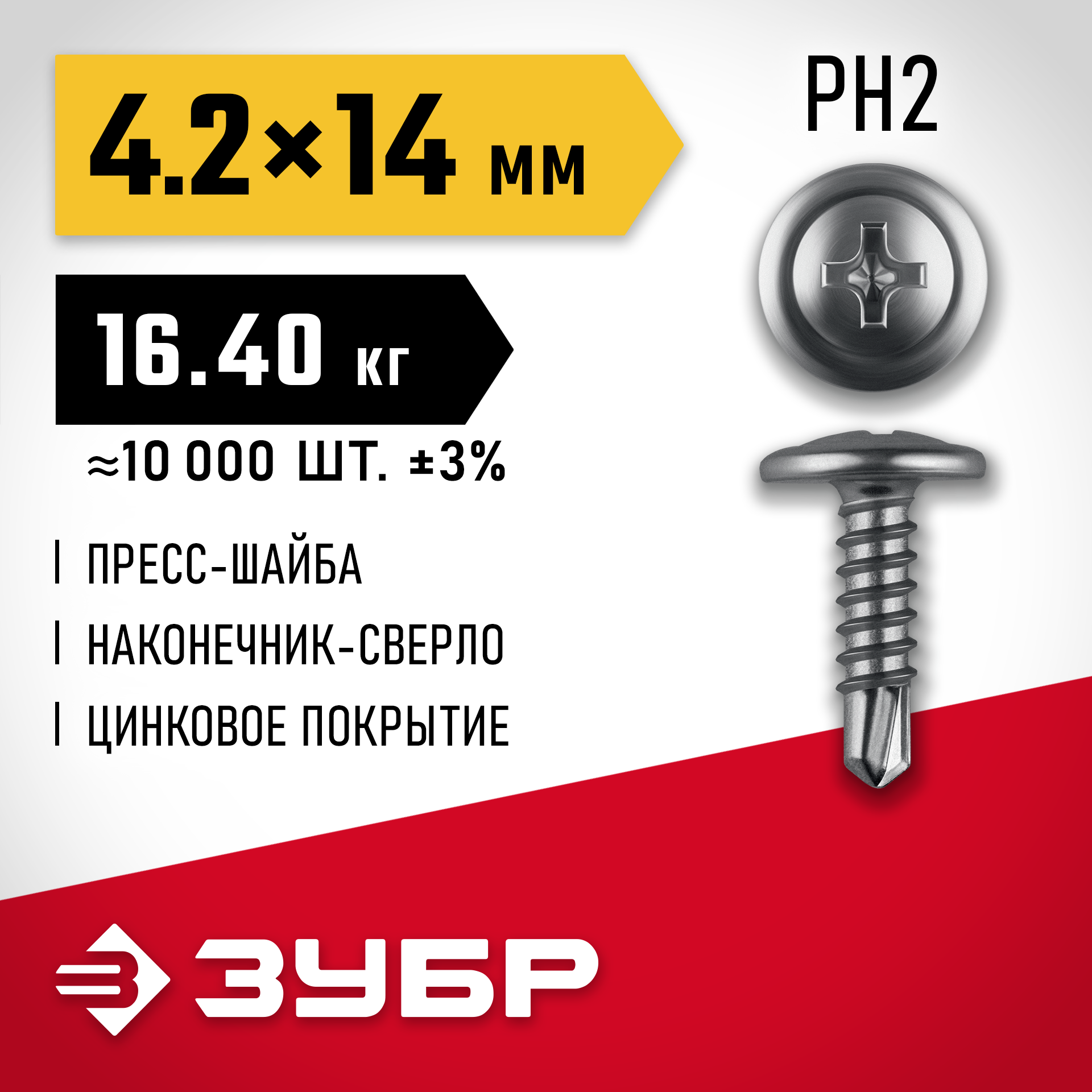 ЗУБР ПШМ-С 14 х 4.2 мм, саморез с пресс-шайбой и сверлом, цинк, 16.4 кг (10000 шт.) (4-300210-42-014)