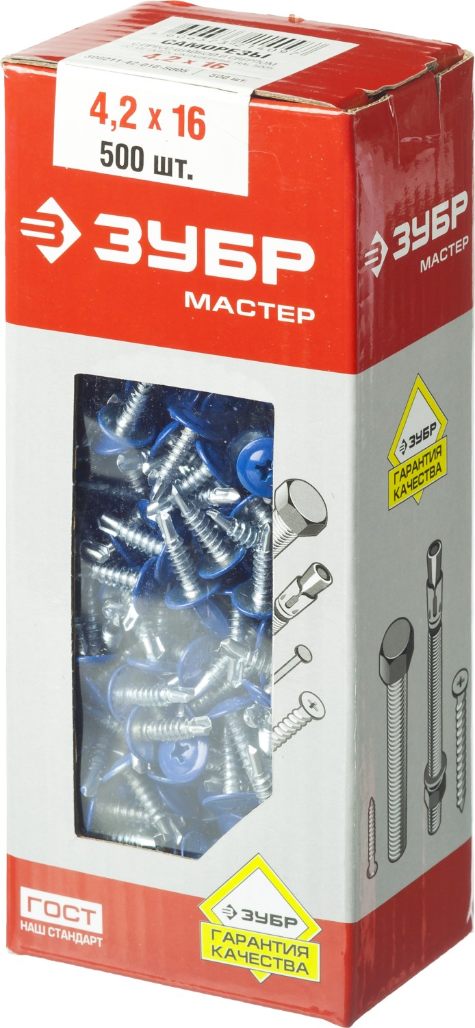 ЗУБР ПШМ-С 5005 16 х 4.2 мм, синий насыщ., 500 шт (0,81 кг.), саморез с пресс-шайбой и сверлом (300211-42-016-5005)