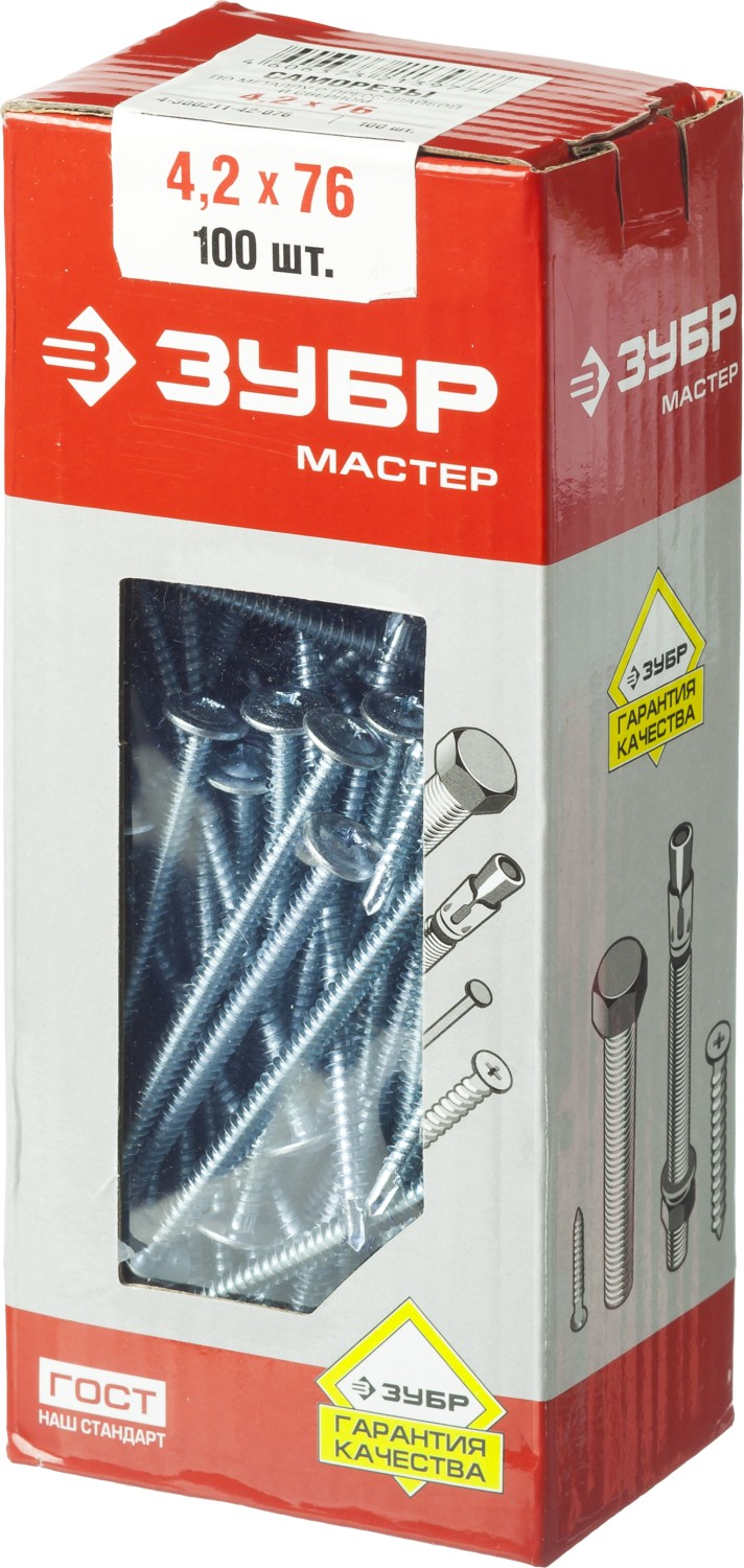 ЗУБР ПШМ-С, 76 х 4.2 мм, цинк, 100 шт, саморез с пресс-шайбой и сверлом (4-300211-42-076)
