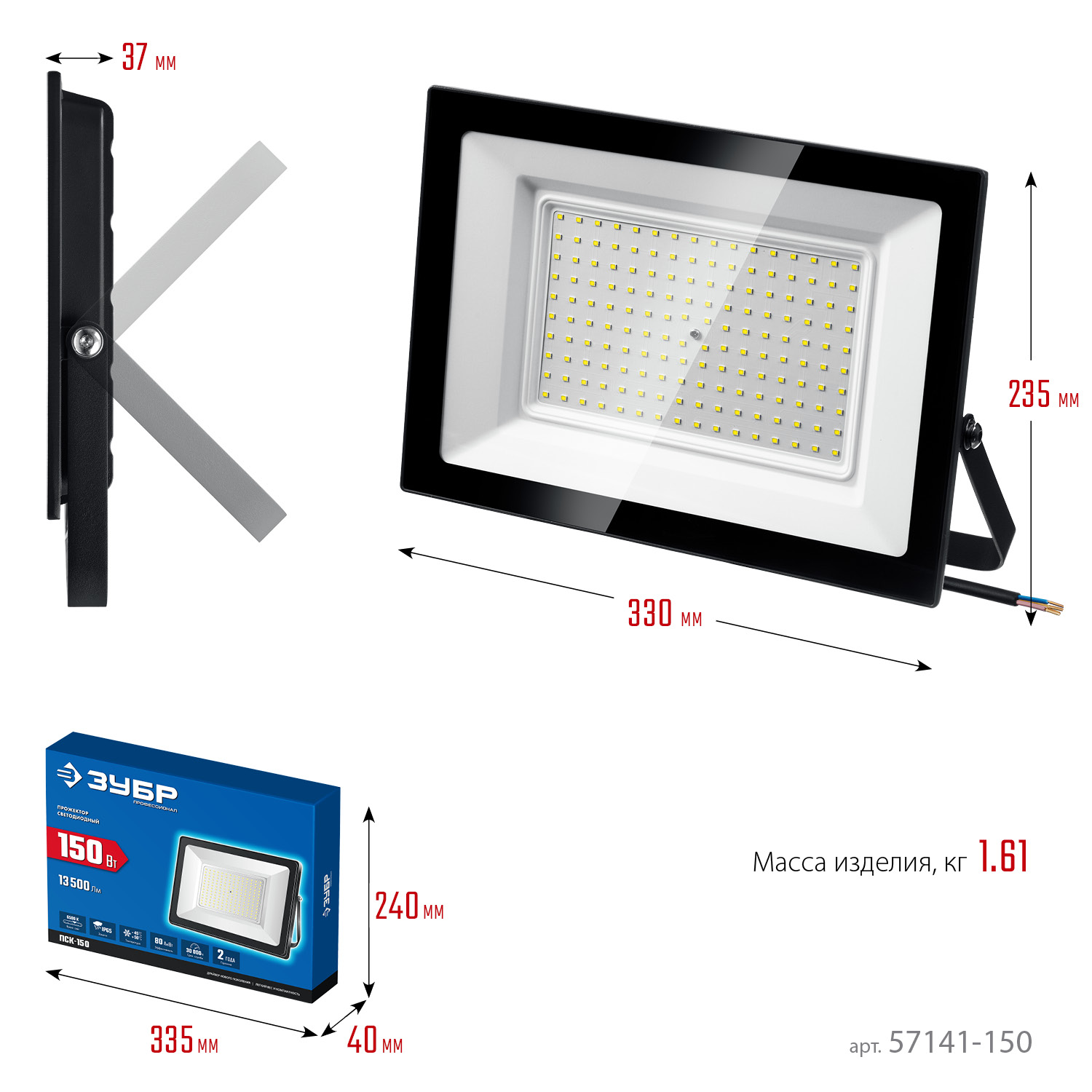 Прожекторы ЗУБР предназначены для подсветки зданий, сооружений, памятников, рекламных щитов, а также для освещения парковок, стадионов и других объектов. Благодаря ударопрочному корпусу, термостойкому стеклу и высокому классу электрозащиты эти изделия можно использовать на улице в любую погоду.