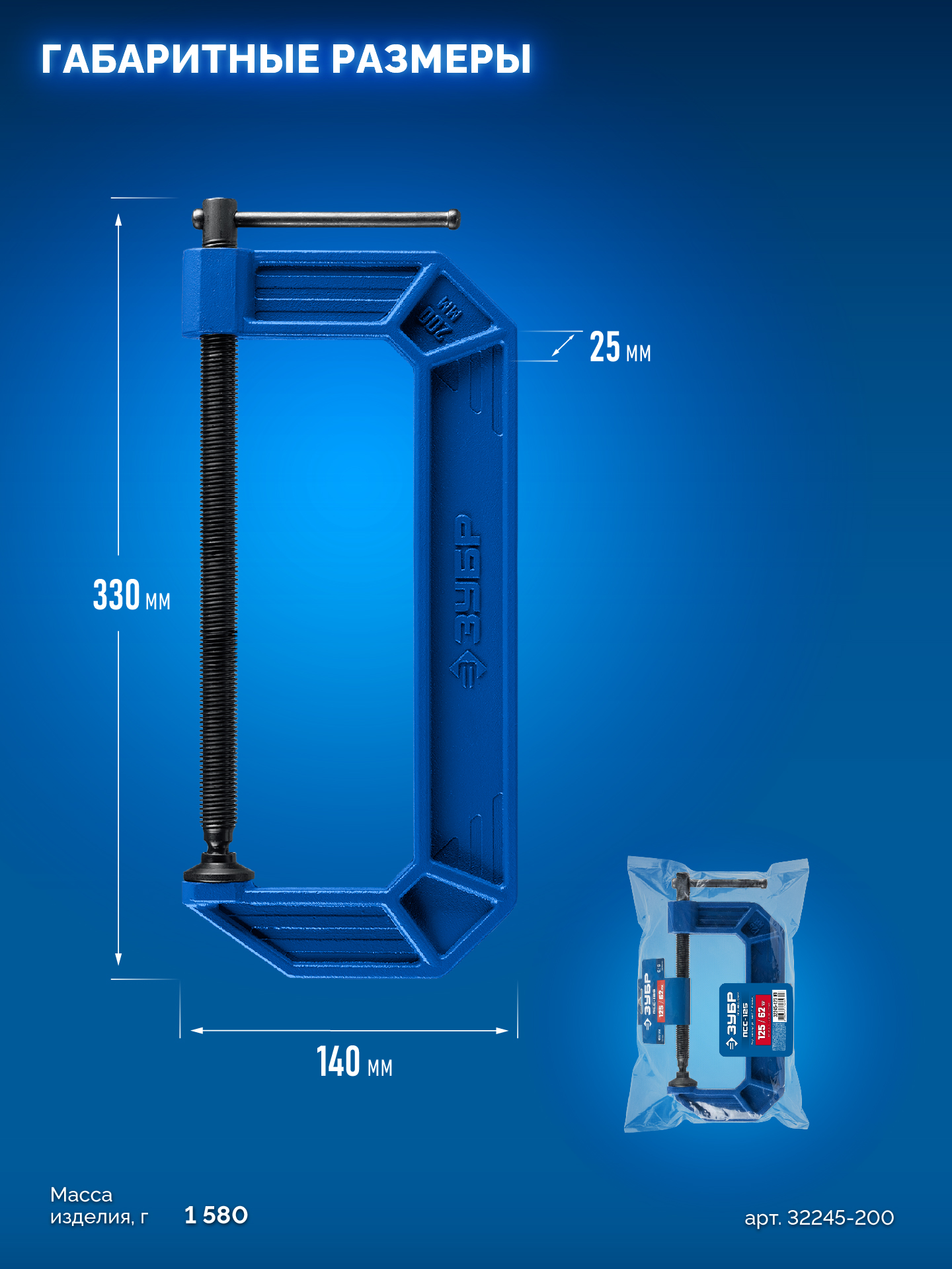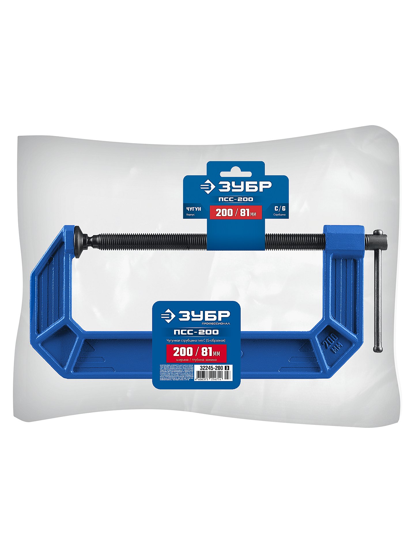 ЗУБР ПСС-200, 200 мм, чугунная струбцина тип С (G-образная), Профессионал (32245-200)