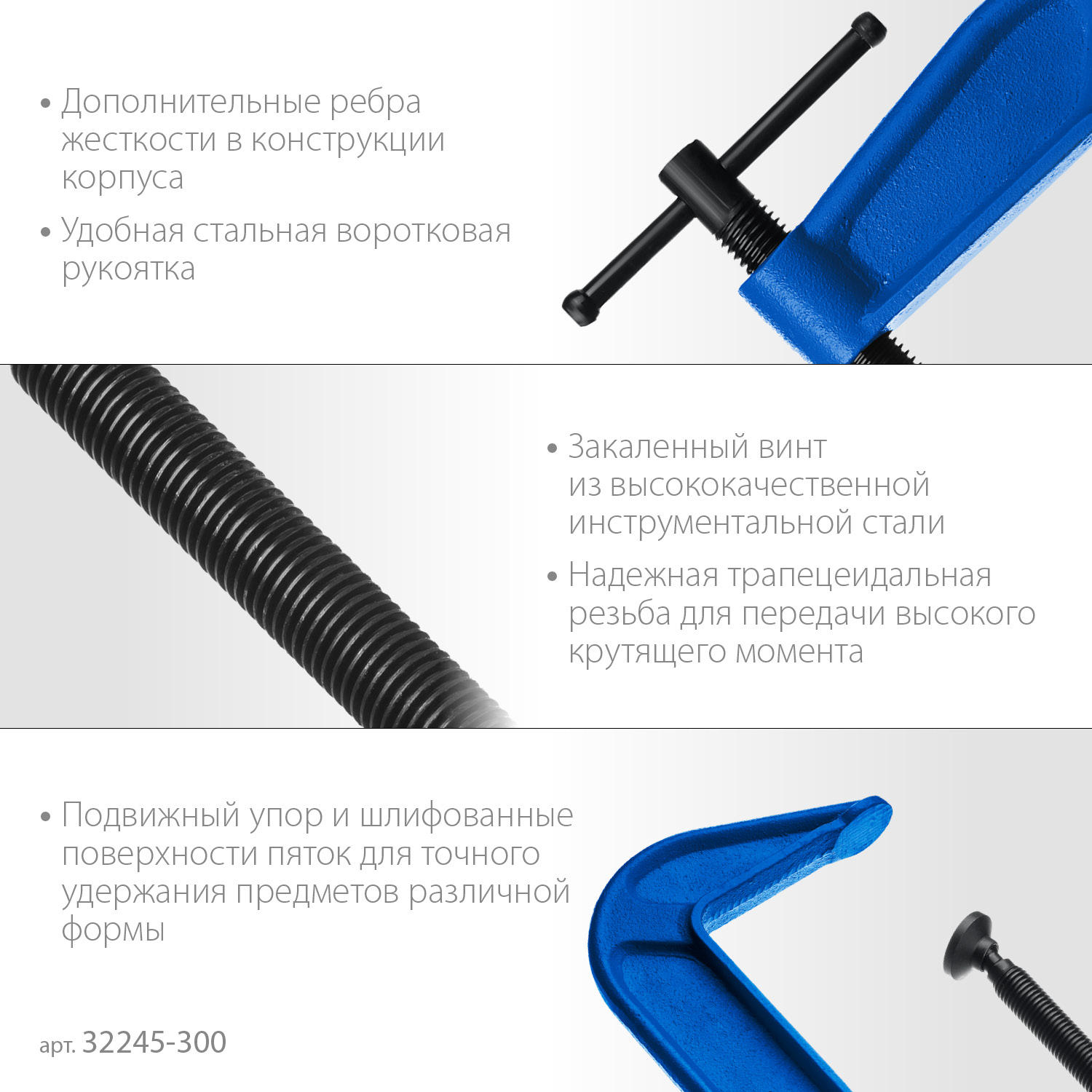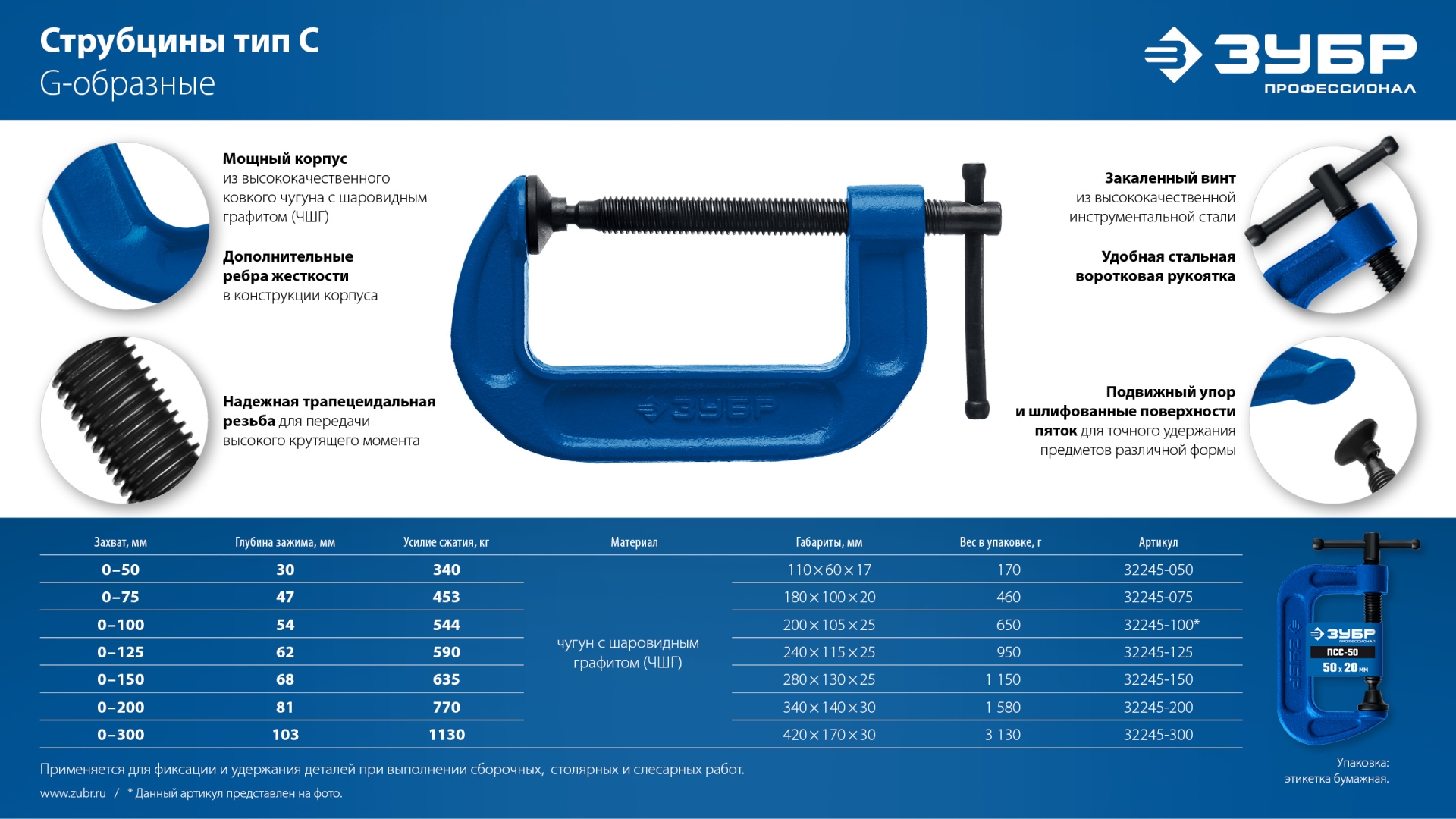 Применяется для фиксации и удержания деталей при выполнении сборочных, столярных и слесарных работ.