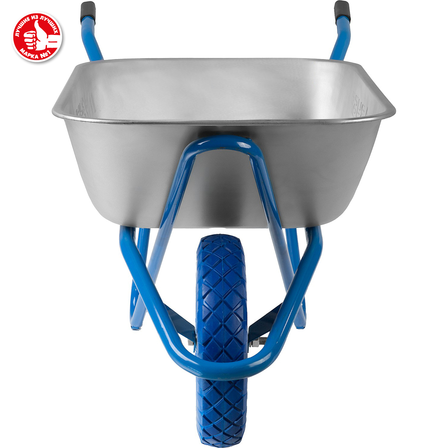 - -Мощная стальная рама из цельногнутой трубы диаметром 32 мм поддерживает кузов снизу и обеспечивает повышенную грузоподъемность тачки.,