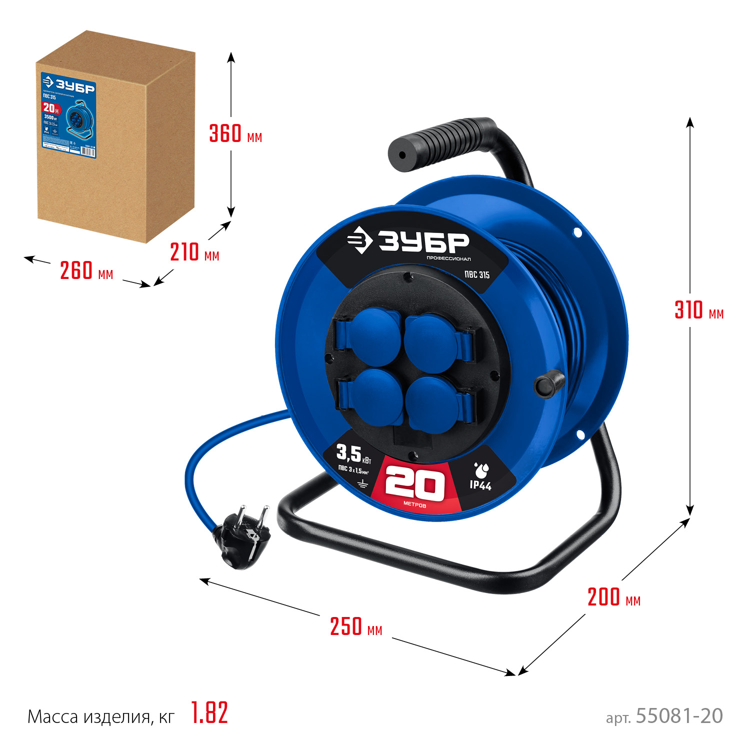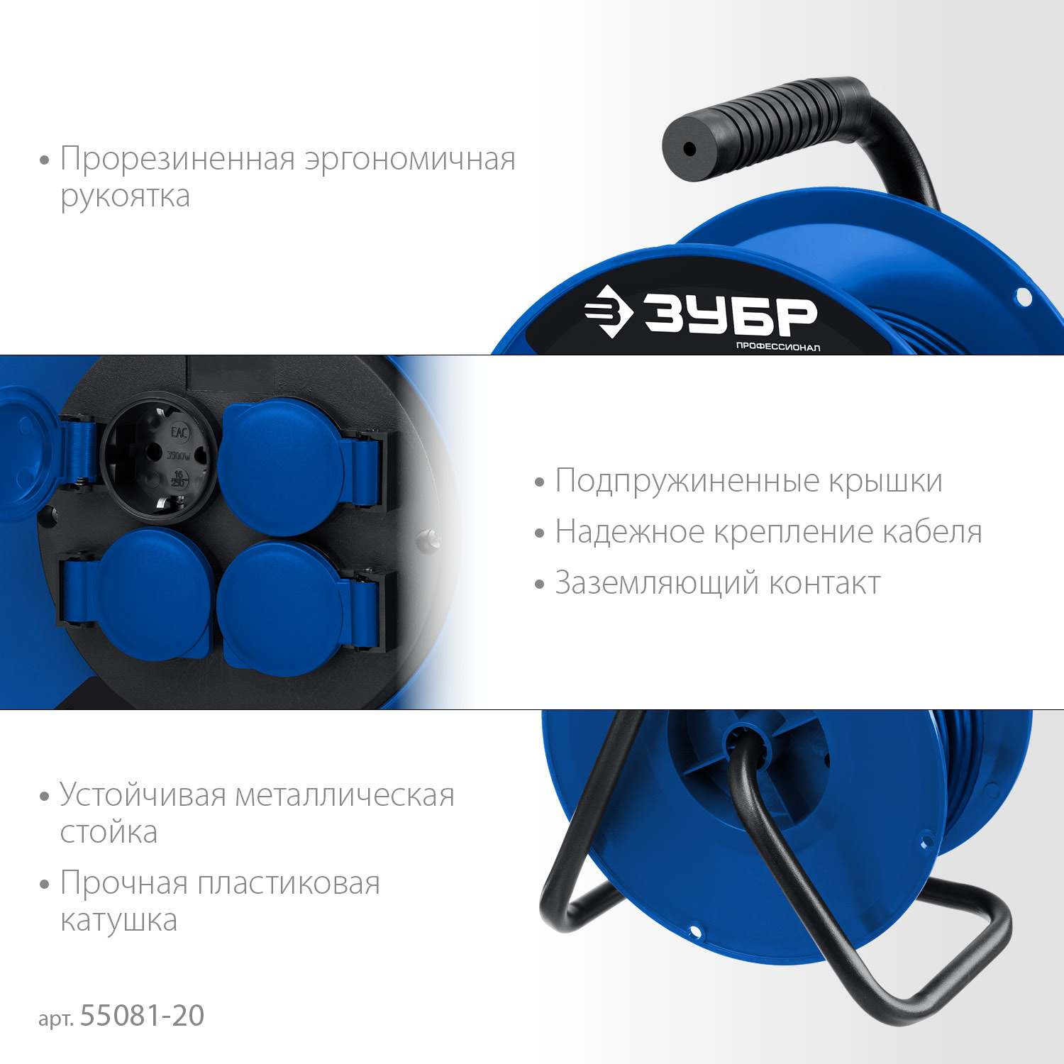 - Катушка позволяет легко сматывать и разматывать кабель, обеспечивая мобильное перемещение и компактное хранение.