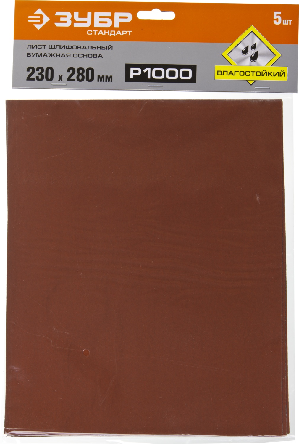 ЗУБР Р1000, 230 х 280 мм, 5 шт, водостойкий, шлифовальный лист на бумажной основе (35417-1000)