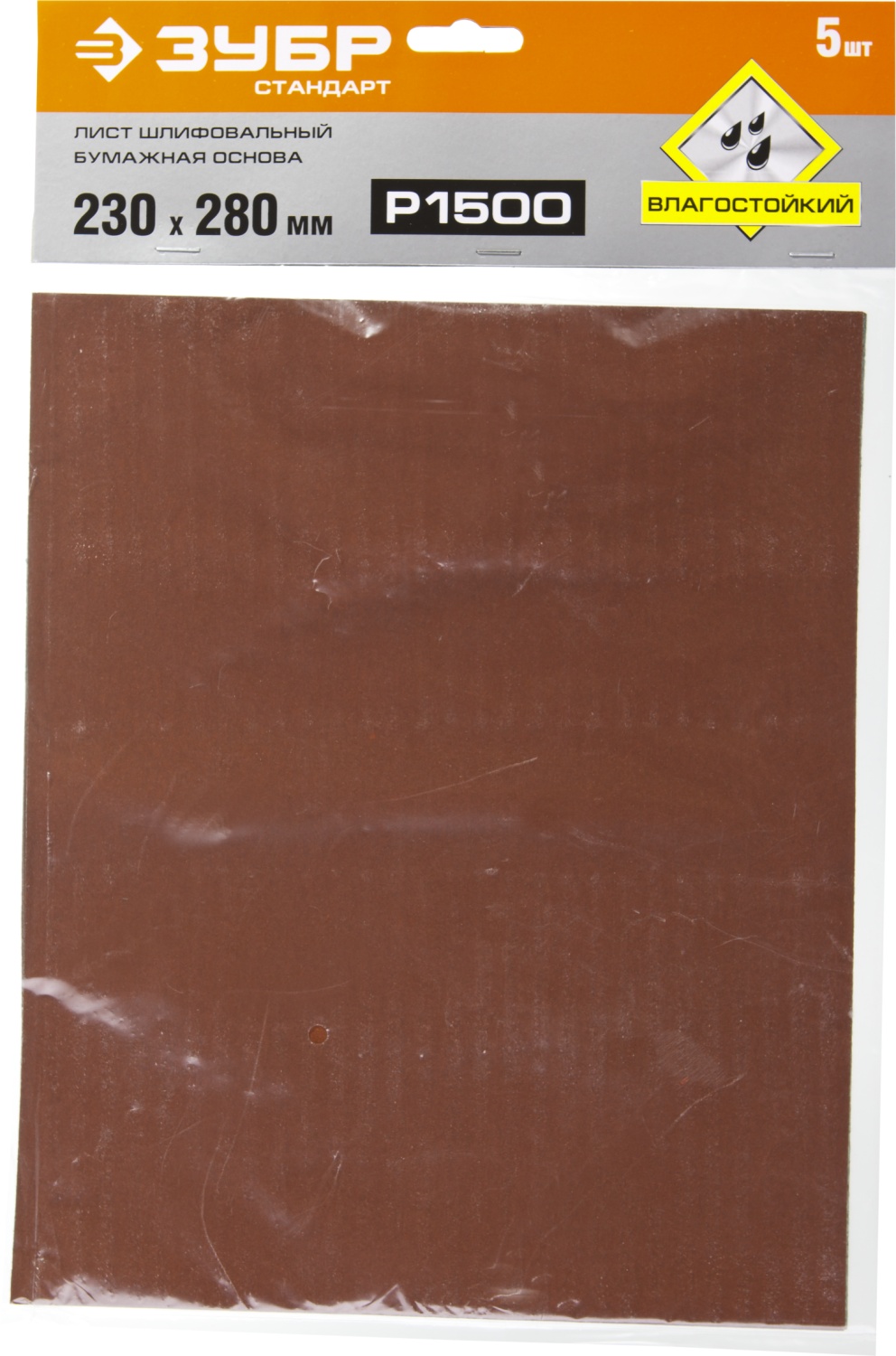 ЗУБР Р1500, 230 х 280 мм, 5 шт, водостойкий, шлифовальный лист на бумажной основе (35417-1500)