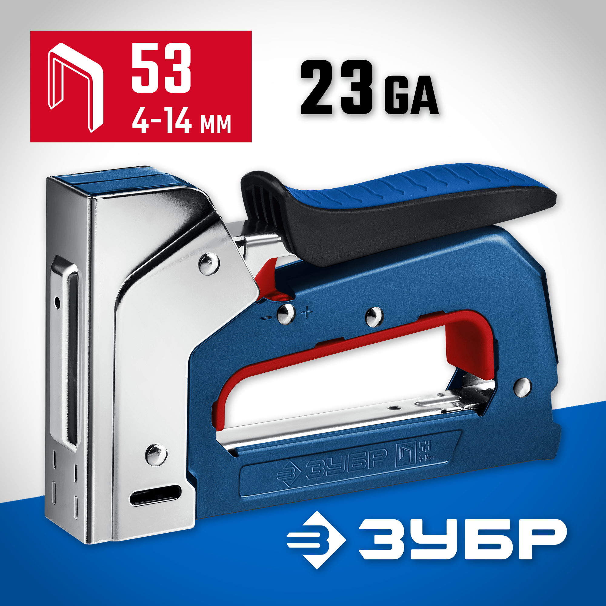 Профессиональный компактный мощный степлер с ударным механизмом рессорного типа, увеличенная мощность, удар без отдачи. Двухпозиционная регулировка силы удара. Стальной усиленный корпус. Рукоятка с системой фиксации и резиновой накладкой, быстрая и безопасная загрузка скоб снизу.