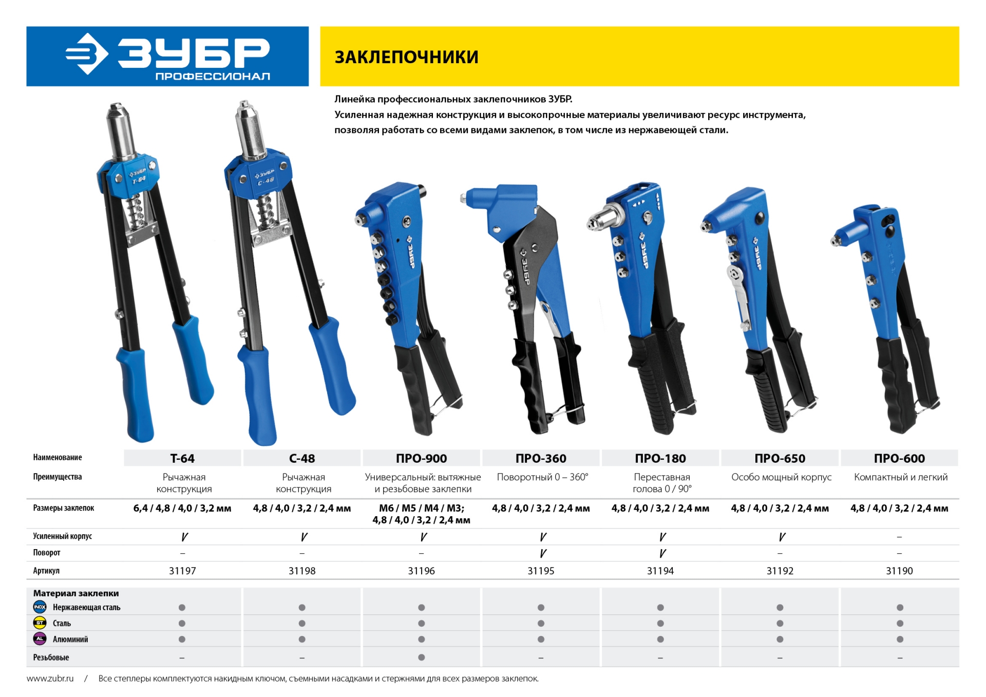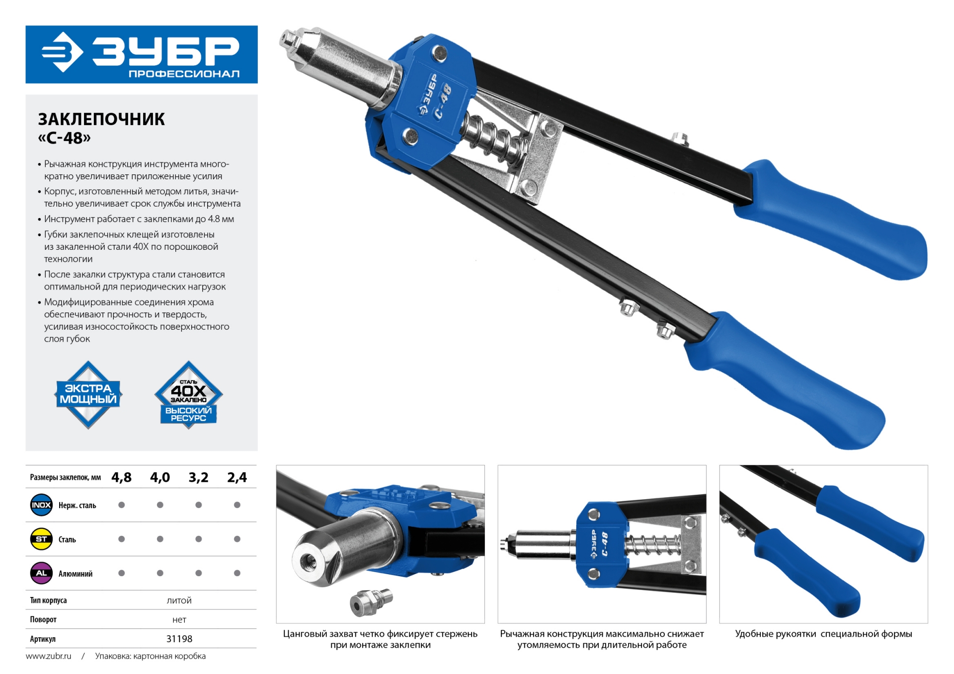 Применяется для установки нержавеющих, стальных и алюминиевых вытяжных заклепок