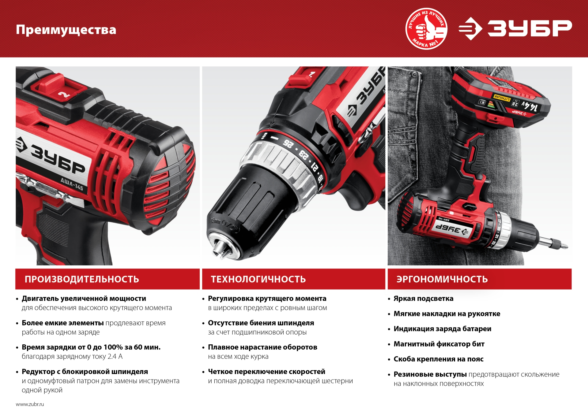 - Высокий крутящий момент при широком диапазоне оборотов благодаря конструкции редуктора