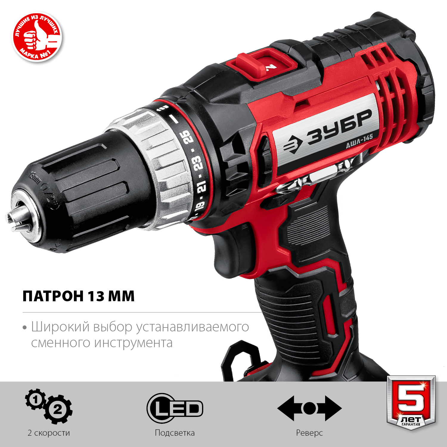 - Двухскоростной планетарный редуктор позволяет как заворачивать с большим крутящим моментом, так и сверлить на высоких оборотах
