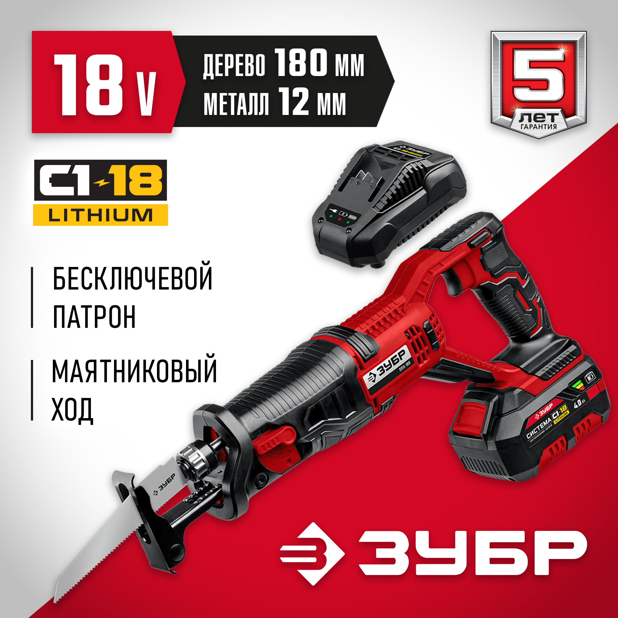 С даты производства 05.2023 патрон позволяет устанавливать как сабельные полотна, так и лобзиковые пилки- Металлический корпус редуктора для высокой надежности