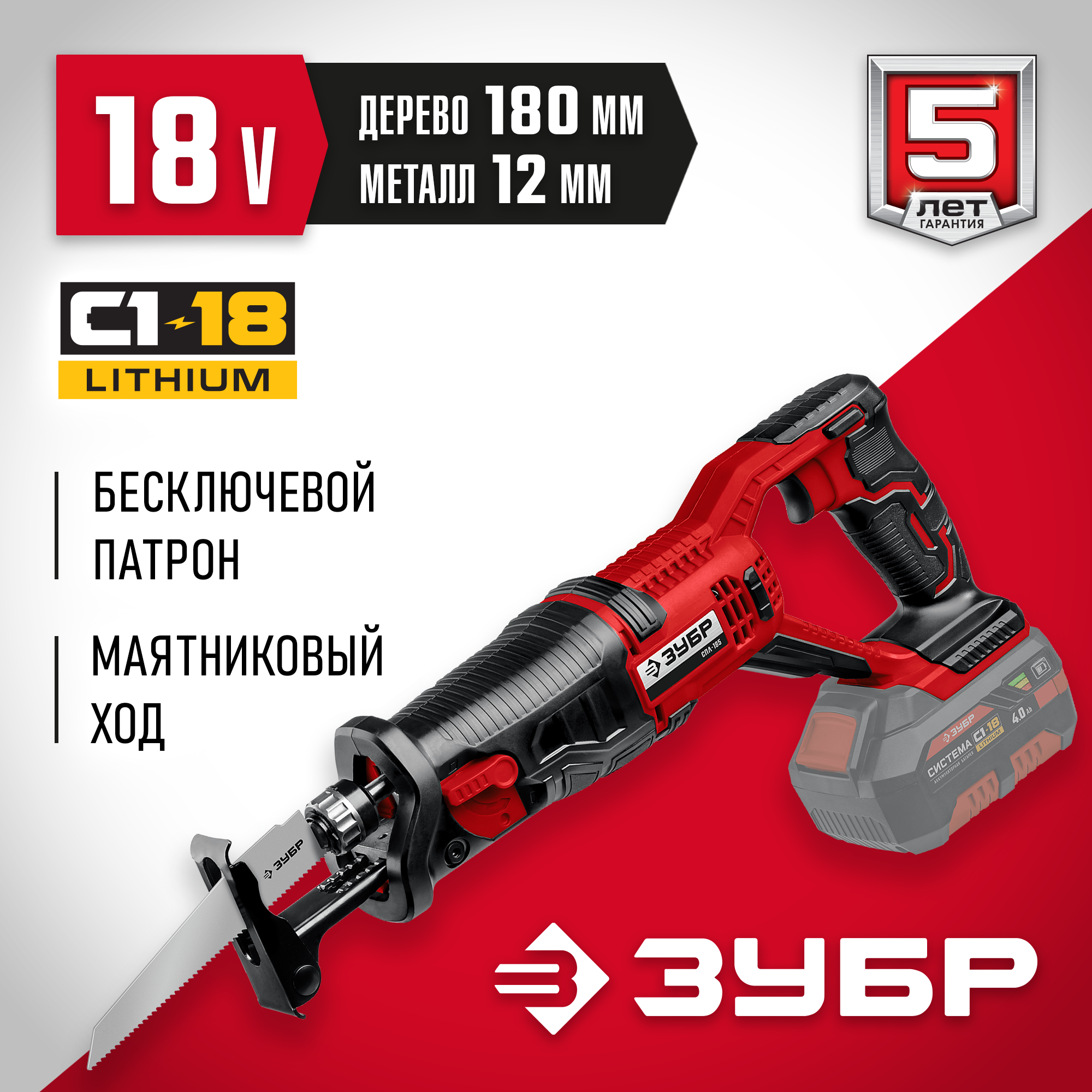 С даты производства 05.2023 патрон позволяет устанавливать как сабельные полотна, так и лобзиковые пилки- Металлический корпус редуктора для высокой надежности