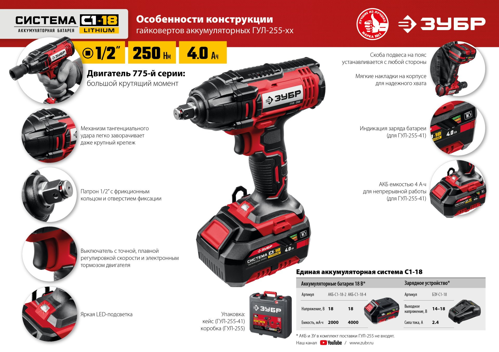 Мощное изделие для заворачивания/отворачивания крепежа (при сборке/разборке металлических конструкций, снятии/установке колес автомобиля и т.д.) благодаря крутящему моменту 250 Нм. Большой крутящий момент позволяет использовать его для тяжелых работ в любой области