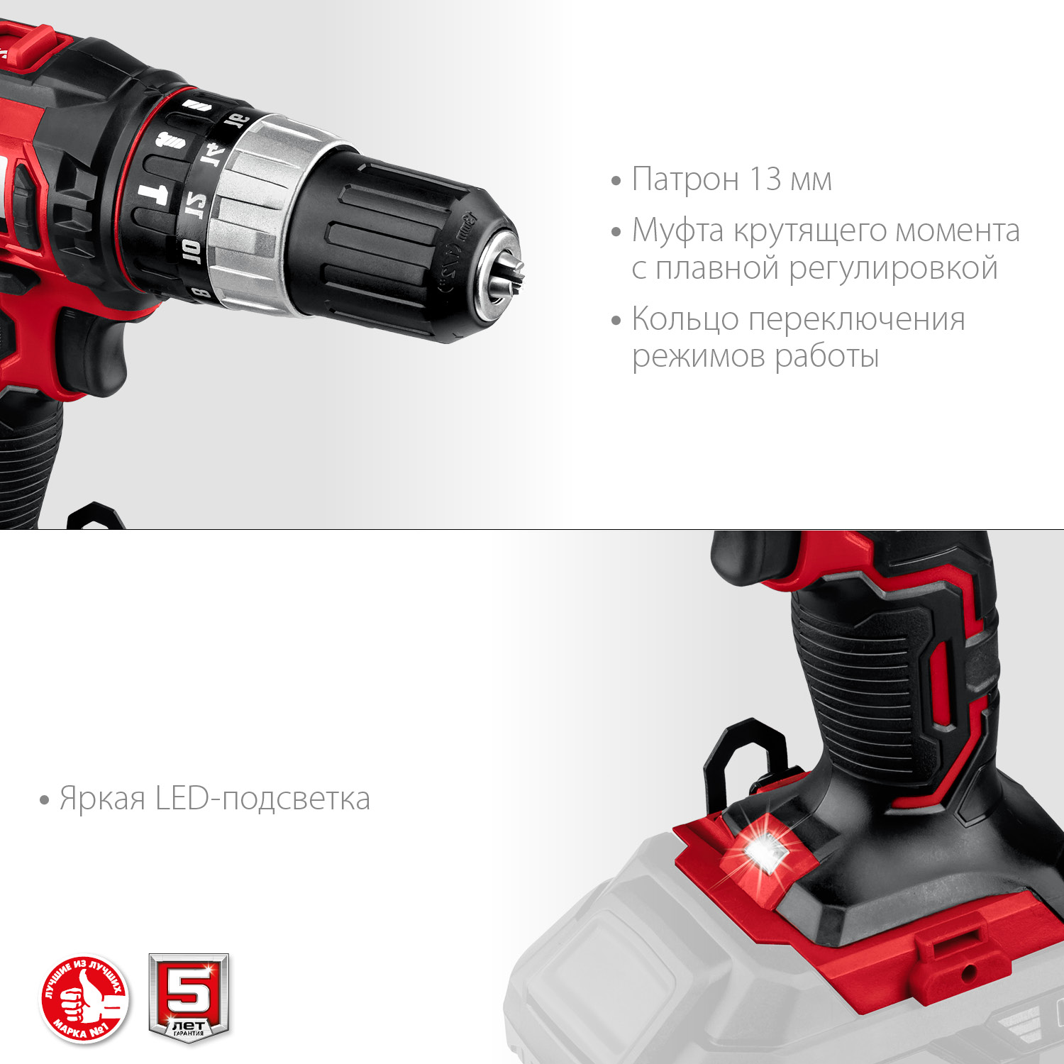 Ударная дрель-шуруповерт ЗУБР - универсальный инструмент для сверления бетона, кирпича, камня и заворачивания метизов. Значительный крутящий момент на первой скорости позволяет выполнять работу со сверлами и крепежом больших диаметров, а высокие обороты на второй скорости - сверлить или выполнять работу быстрее