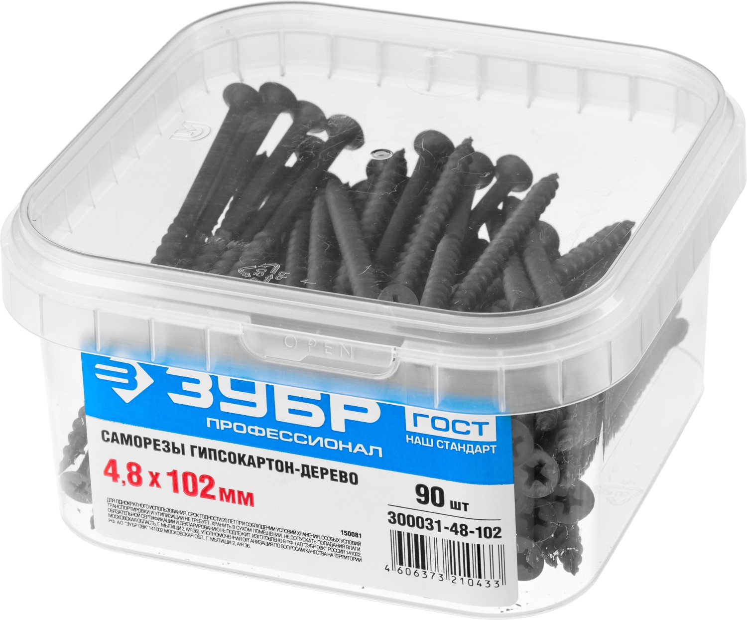 ЗУБР СГД, 102 х 4.8 мм, фосфатированное покрытие, 90 шт (0,71 кг.), саморез гипсокартон-дерево, Профессионал (300031-48-102)