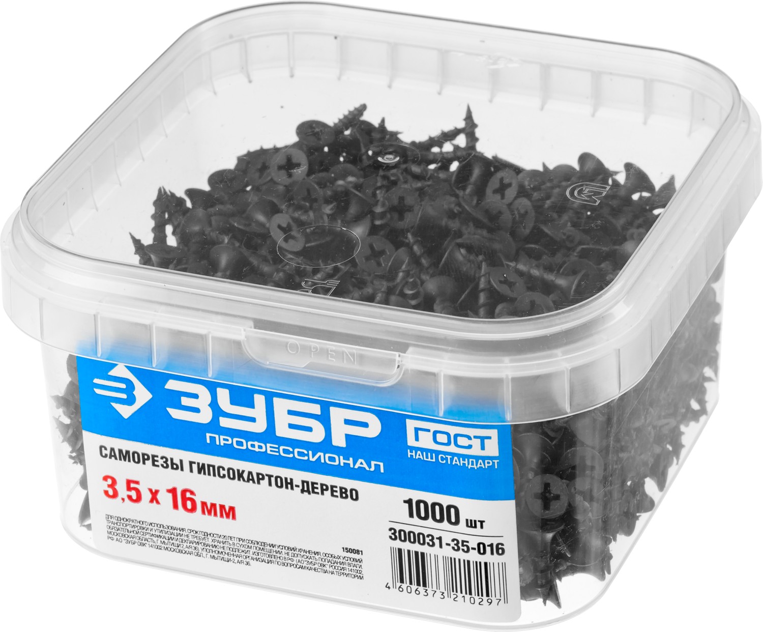 ЗУБР СГД, 16 х 3.5 мм, фосфатированное покрытие, 1000 шт (0,95 кг.), саморез гипсокартон-дерево, Профессионал (300031-35-016)