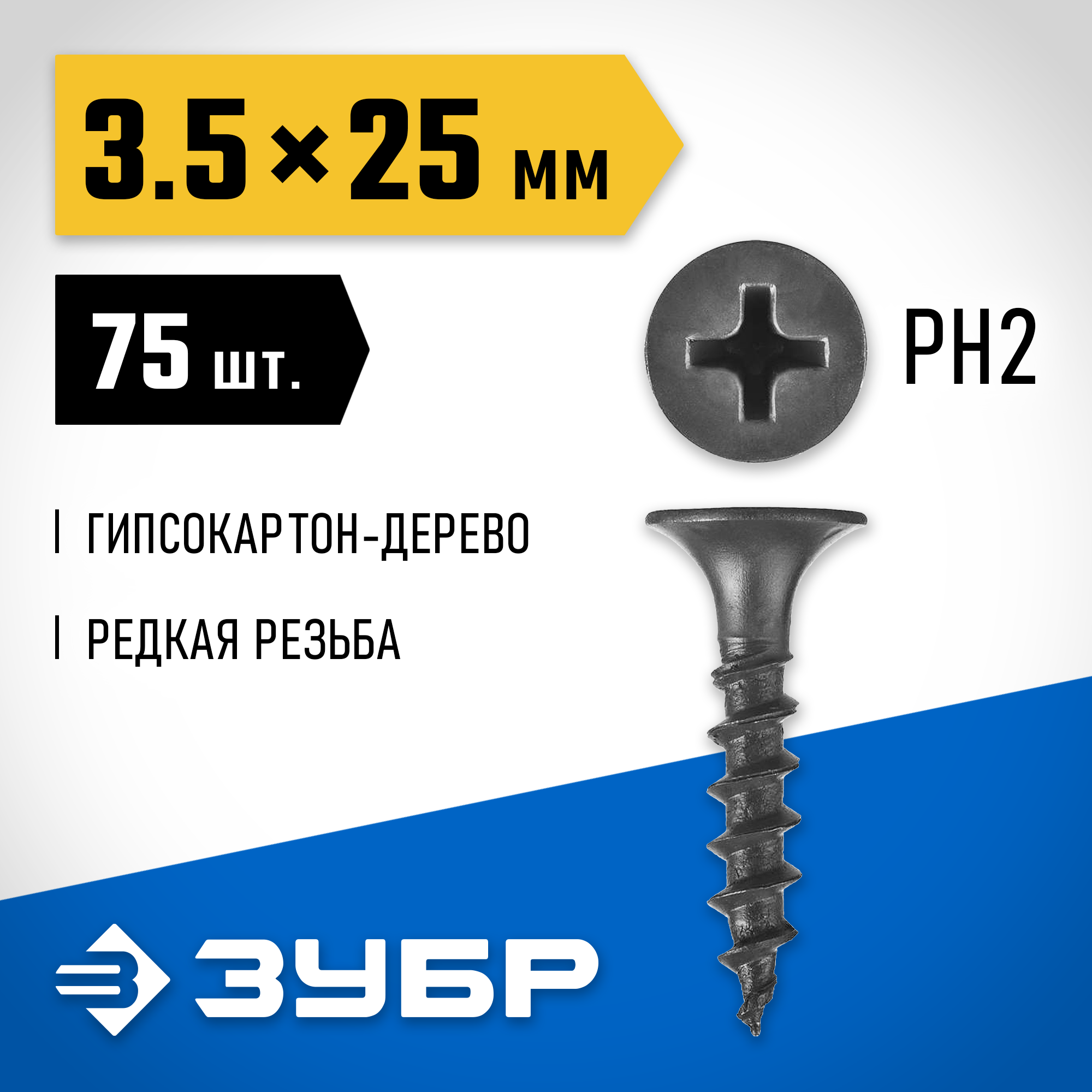 ЗУБР СГД, 25 х 3.5 мм, фосфатированное покрытие, 75 шт, саморез гипсокартон-дерево, Профессионал (300036-35-025)