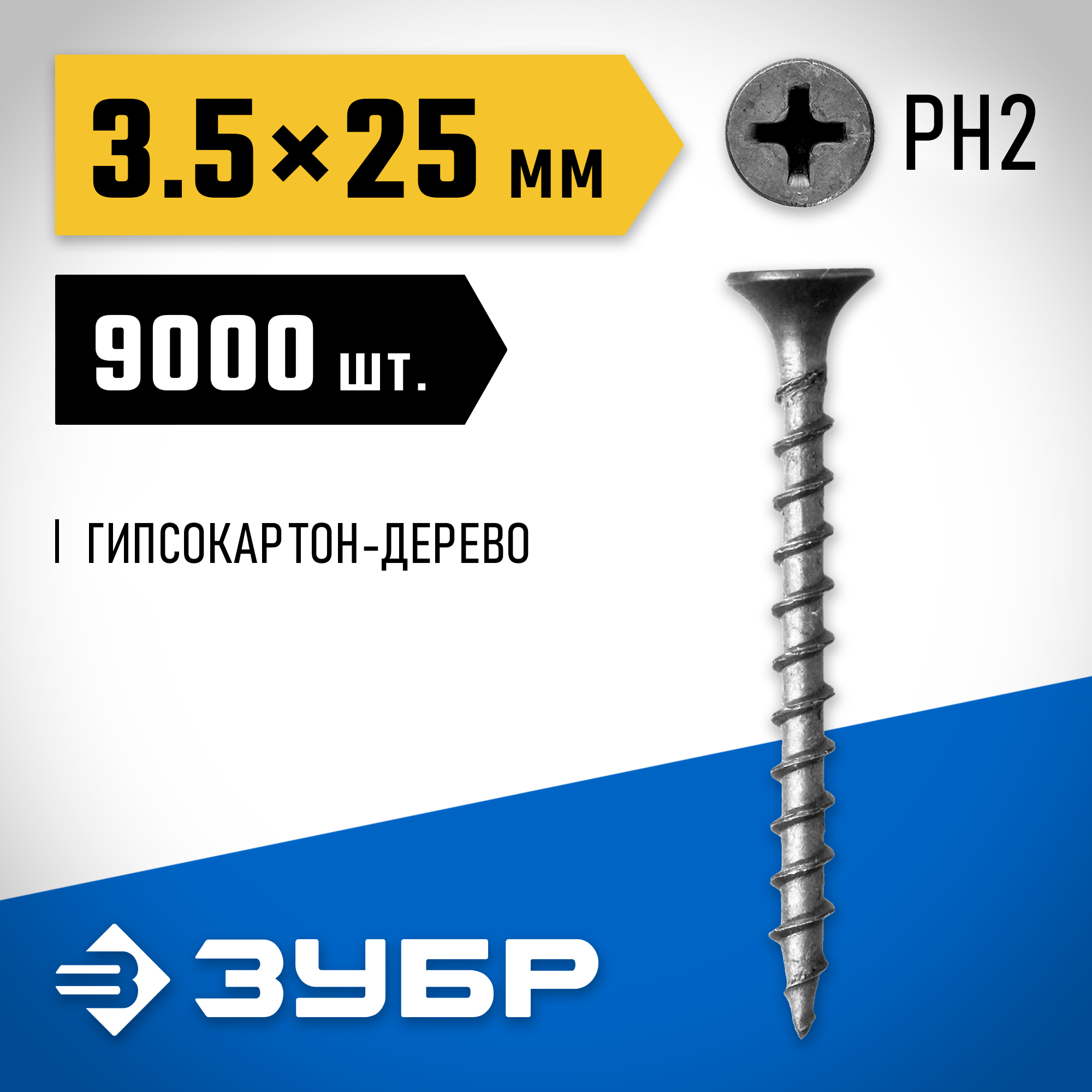 ЗУБР СГД, 25 х 3.5 мм, фосфатированное покрытие, 9000 шт (10,97 кг.), саморез гипсокартон-дерево, Профессионал (4-300030-35-025)