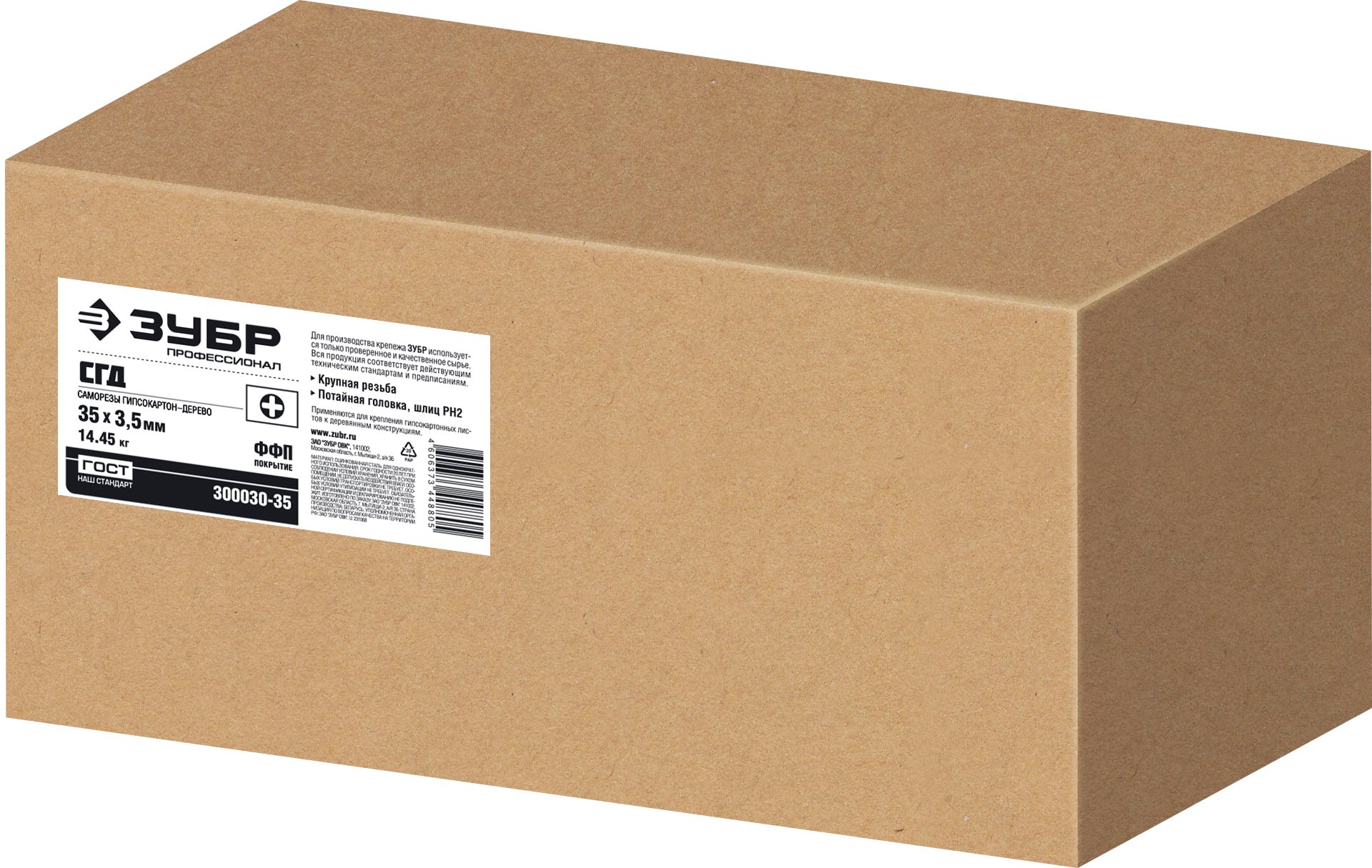 ЗУБР СГД 35 х 3.5 мм, саморез гипсокартон-дерево, фосфат., 14.45 кг (300030-35)
