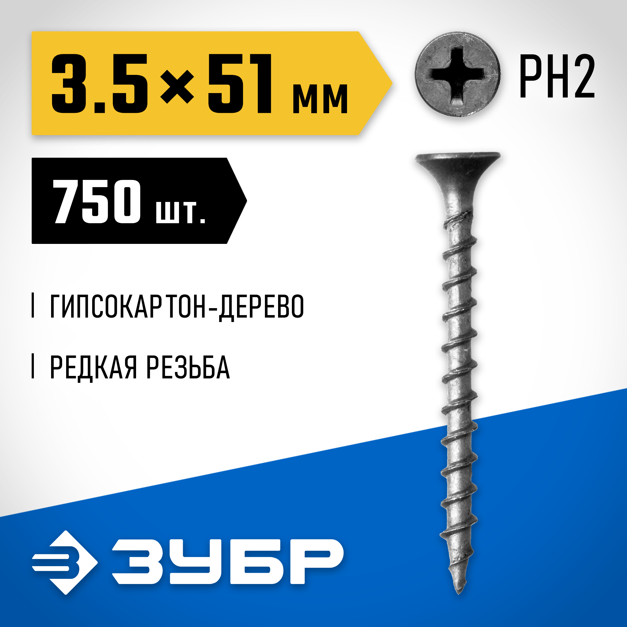 ЗУБР СГД, 51 х 3.5 мм, фосфатированное покрытие, 750 шт (1,89 кг.), саморез гипсокартон-дерево, Профессионал (300035-35-051)