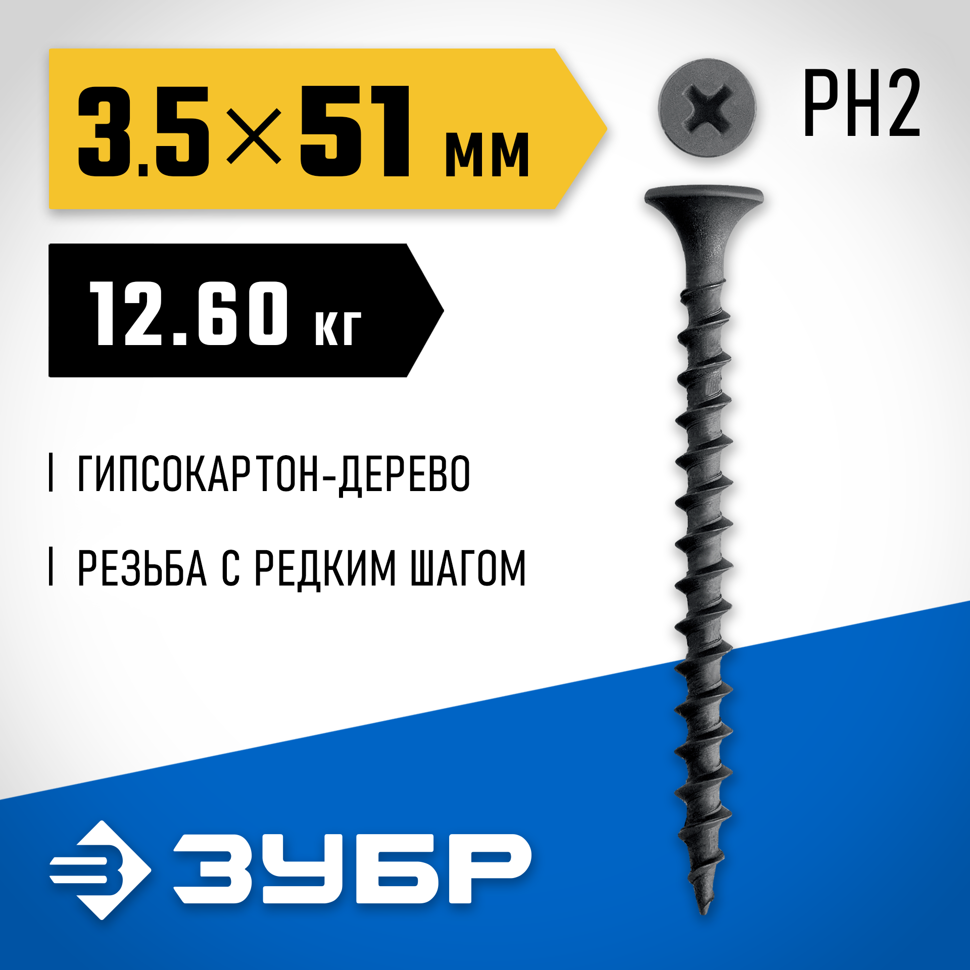 ЗУБР СГД 51 х 3.5 мм, саморез гипсокартон-дерево, фосфат., 12.6 кг (300030-51)