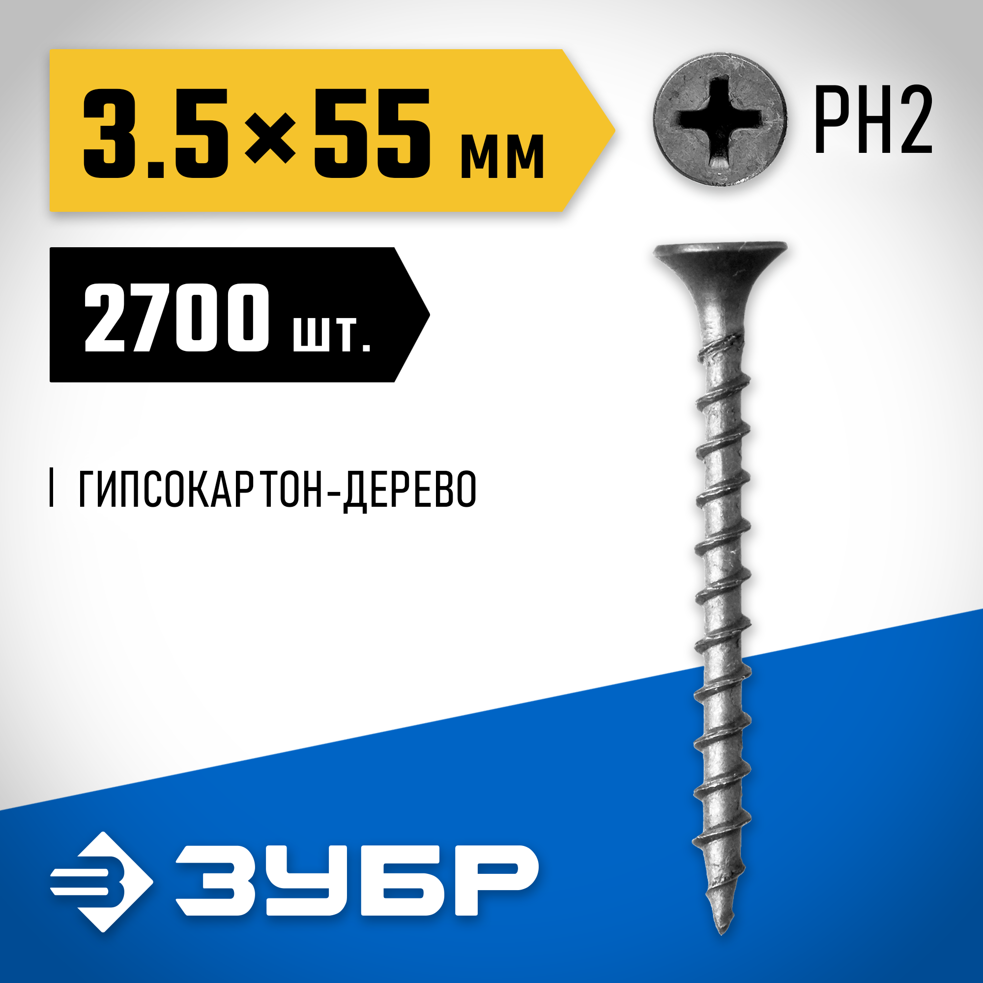 ЗУБР СГД, 55 х 3.5 мм, фосфатированное покрытие, 2700 шт (6,37 кг.), саморез гипсокартон-дерево, Профессионал (4-300030-35-055)