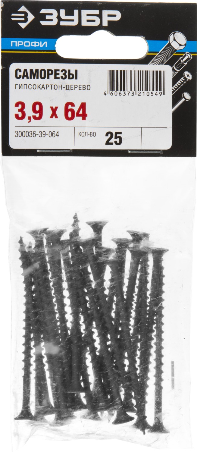 ЗУБР СГД, 64 х 3.9 мм, фосфатированное покрытие, 25 шт, саморез гипсокартон-дерево, Профессионал (300036-39-064)