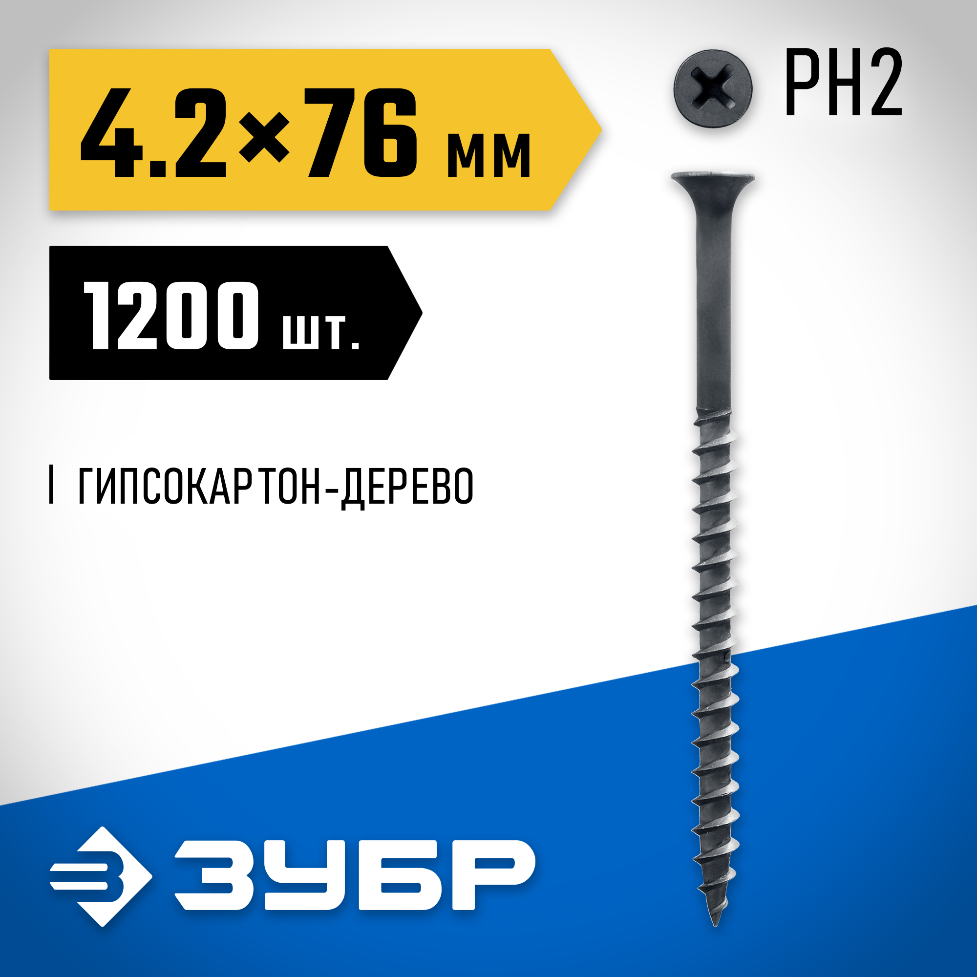 ЗУБР СГД, 76 х 4.2 мм, фосфатированное покрытие, 1200 шт (4,8 кг.), саморез гипсокартон-дерево, Профессионал (4-300030-42-075)