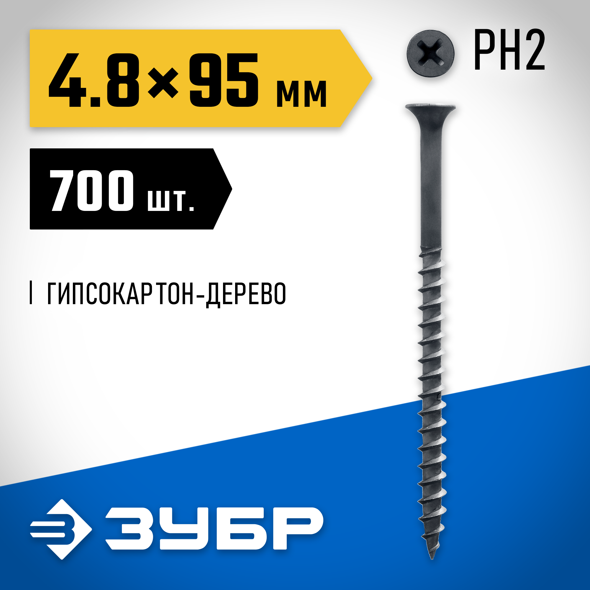 ЗУБР СГД, 95 х 4.8 мм, фосфатированное покрытие, 700 шт (4,42 кг.), саморез гипсокартон-дерево, Профессионал (4-300030-48-095)