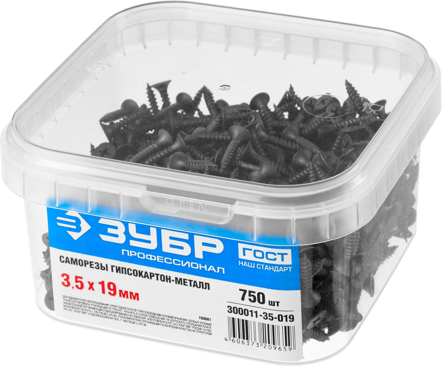 ЗУБР СГМ, 19 х 3.5 мм, фосфатированное покрытие, 750 шт (0,85 кг.), саморез гипсокартон-металл, Профессионал (300011-35-019)