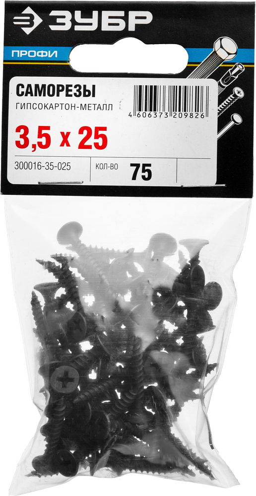 ЗУБР СГМ, 25 х 3.5 мм, фосфатированное покрытие, 75 шт, саморез гипсокартон-металл, Профессионал (300016-35-025)